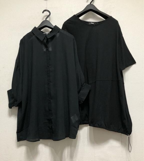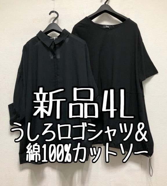 新品☆4L黒系♪シアー透け感シャツ&綿100%カットソー☆x188