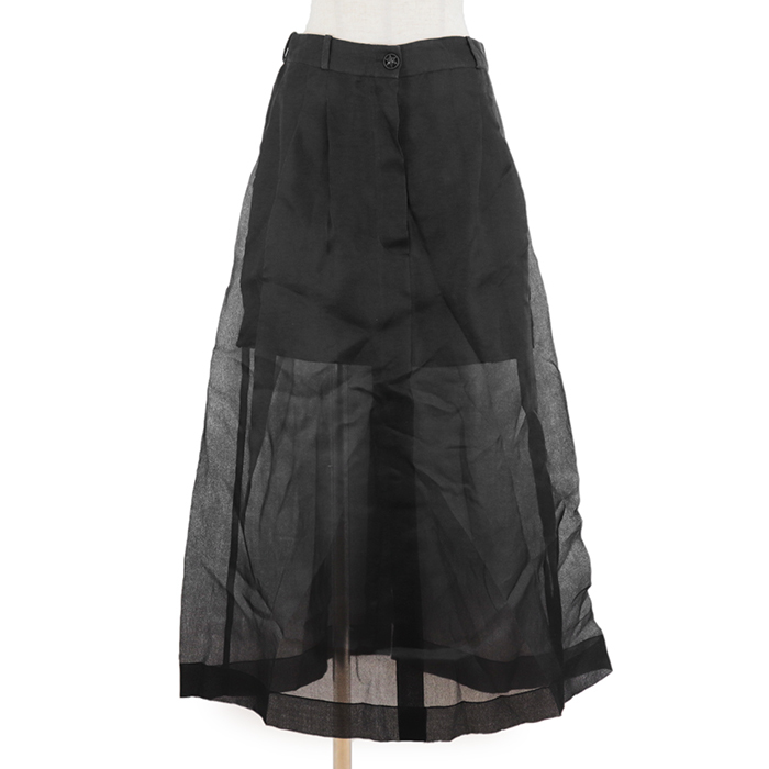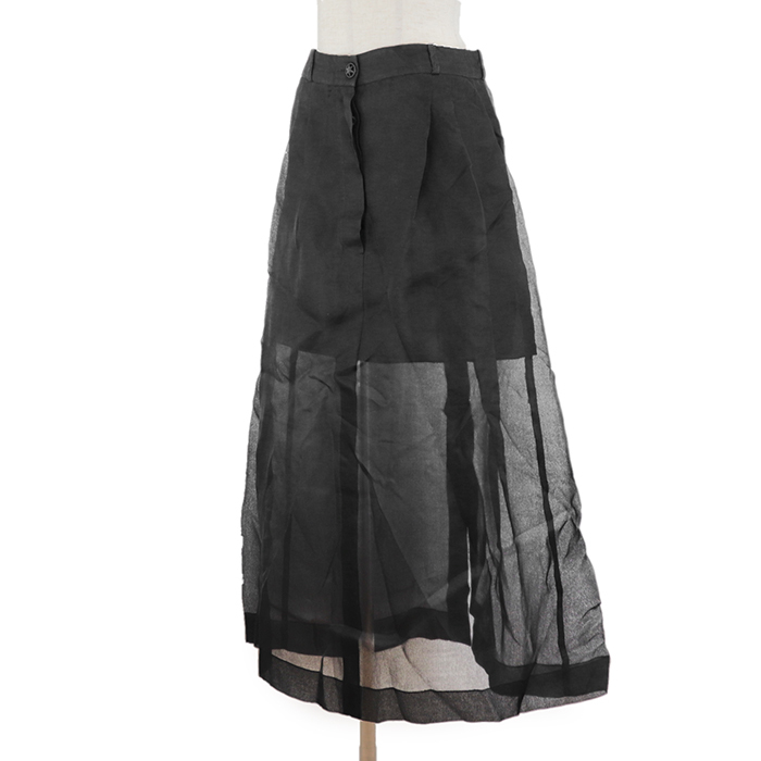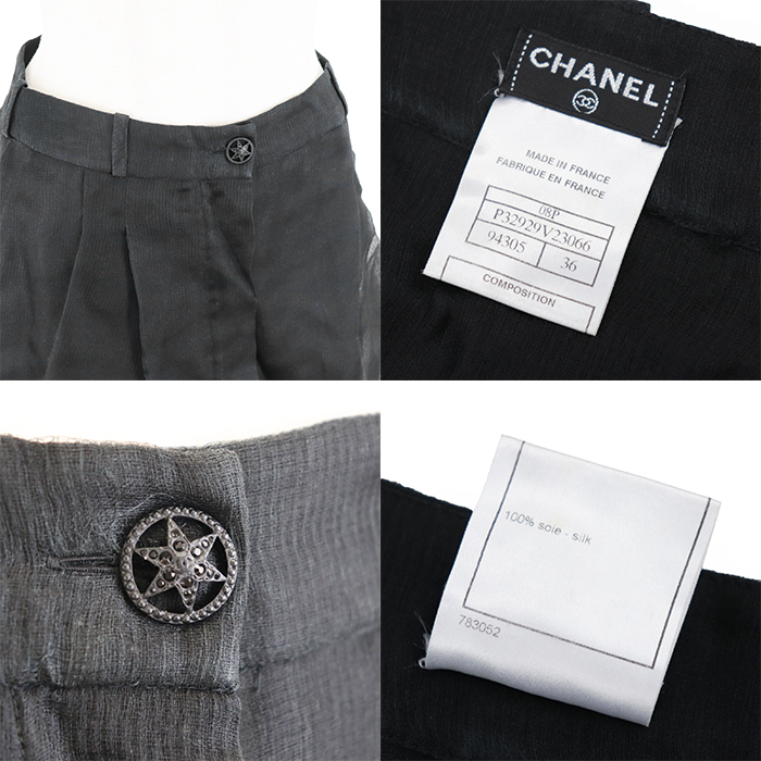 【美品】シャネル P32929 08P シアースカート 星ボタン プリーツ スリット シースルー シルク100% レディース 36 黒 フランス製 CHANEL