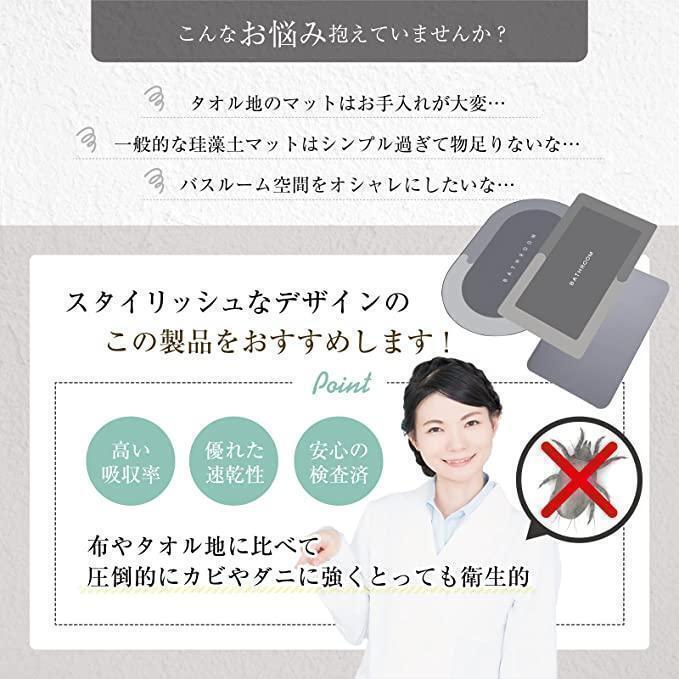 【カビ、ダニが発生しにくい】水分を放出する珪藻土バスマットは、カビやダニにも強い。 布製と違い、繊維の中にダニが入ることもないので、たとえダニが付着してしまっても増殖はしません。 定期的に清潔にするだけで、いつでも安心してお使いいただけます