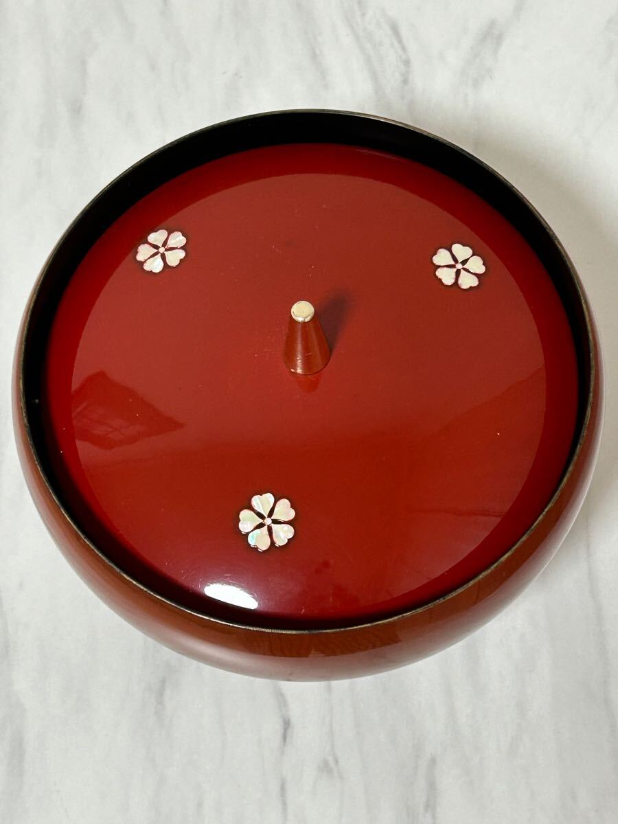 貝で桜の装飾がされた上品で可愛らしいお品です。菓子器ですが、小物入れとしても。