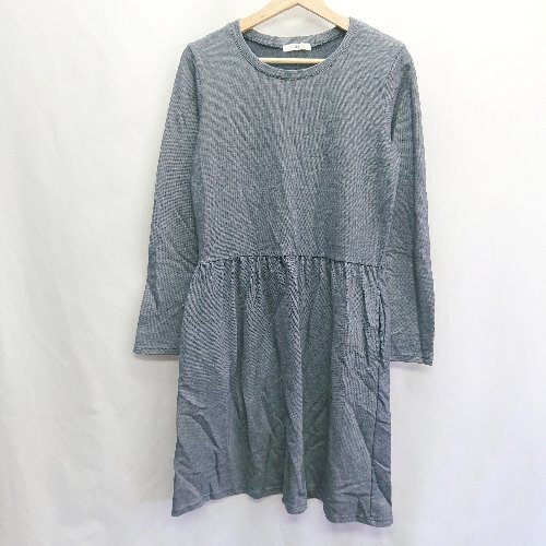 ◇ ⊇ doux bleu ドゥーブルー 綿混合 花柄 長袖 膝下 ワンピース サイズF グレー系 レディース E
