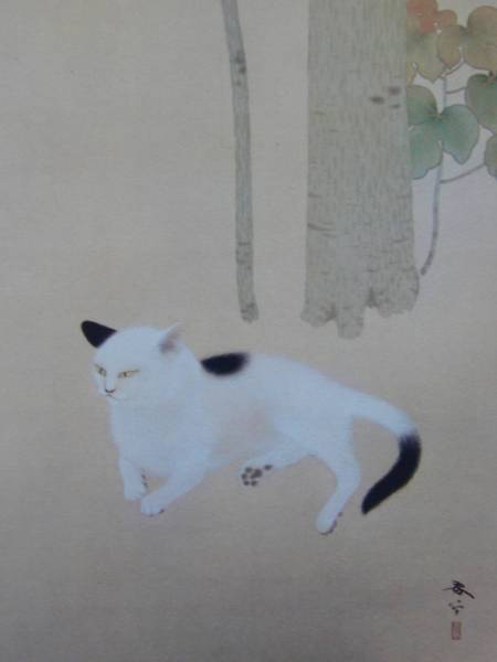 菱田春草、梧桐に猫、希少な額装用画集より、新品高級額装付、状態良好、送料無料