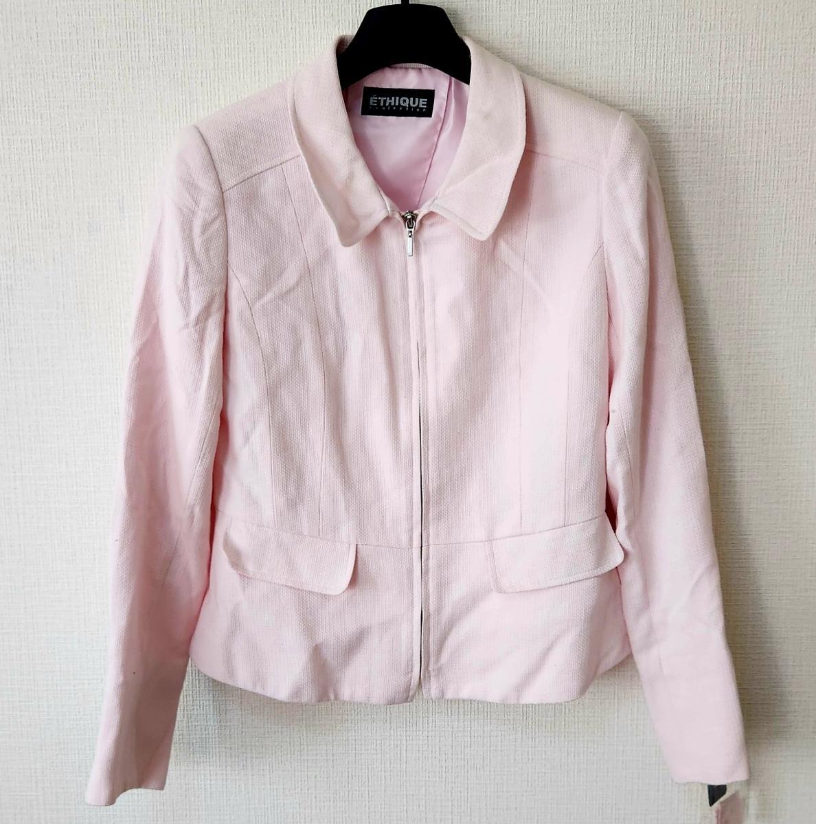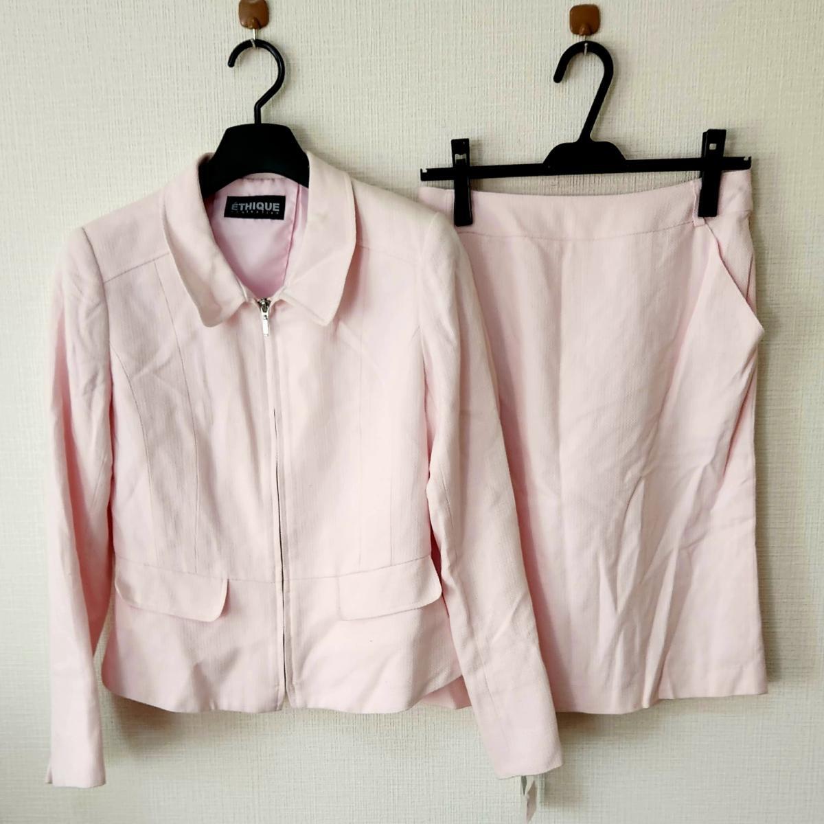 フロントジップのジャケットとスカートの2点セットです