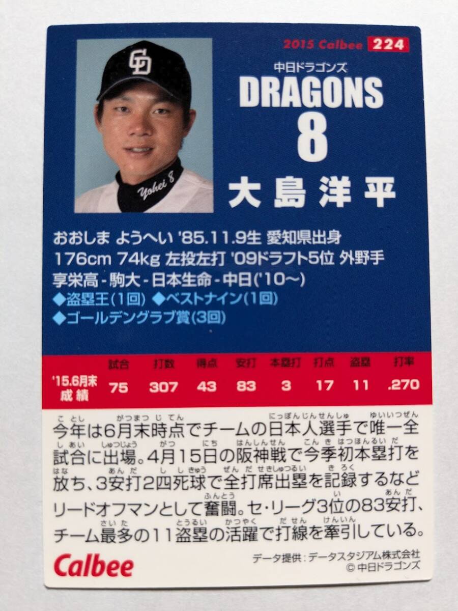 2015 カルビープロ野球チップス 224 大島洋平 中日