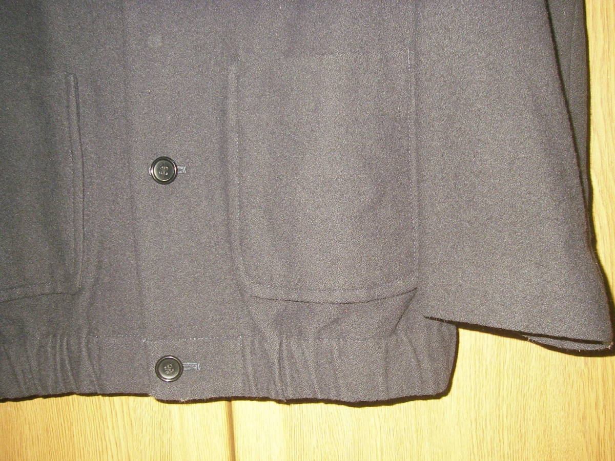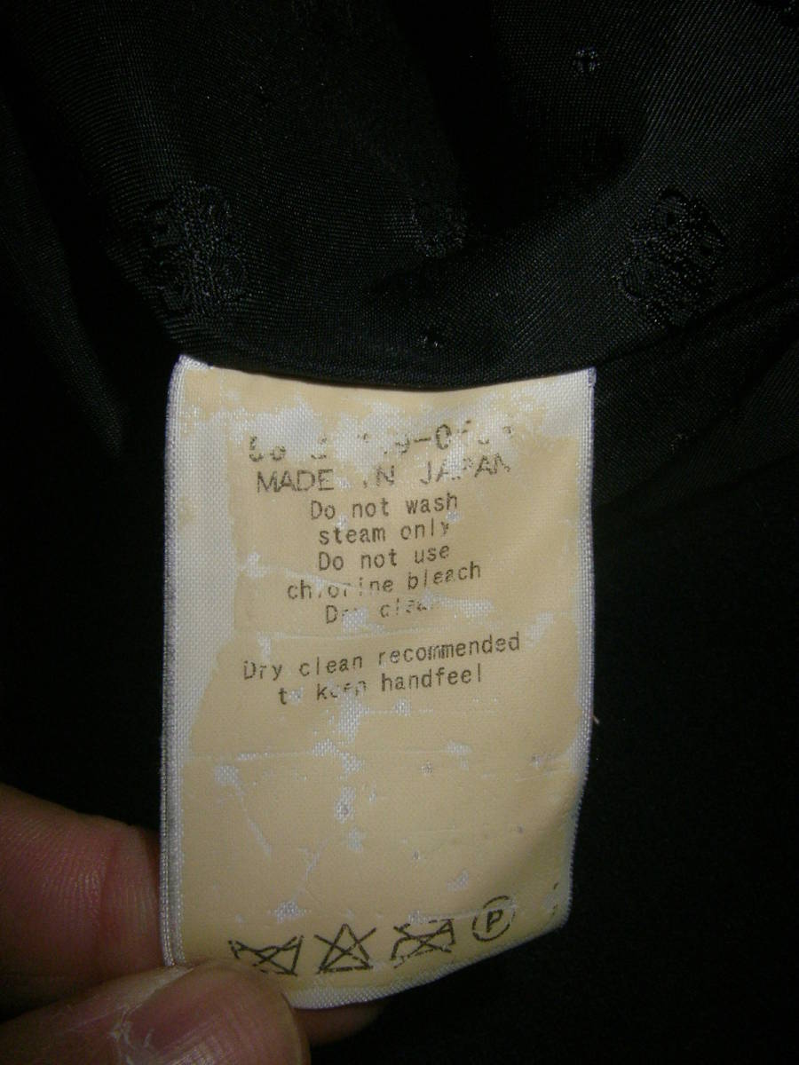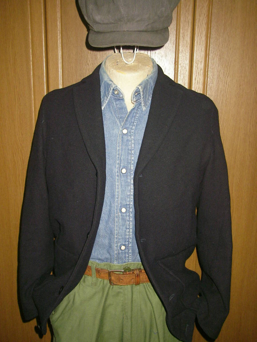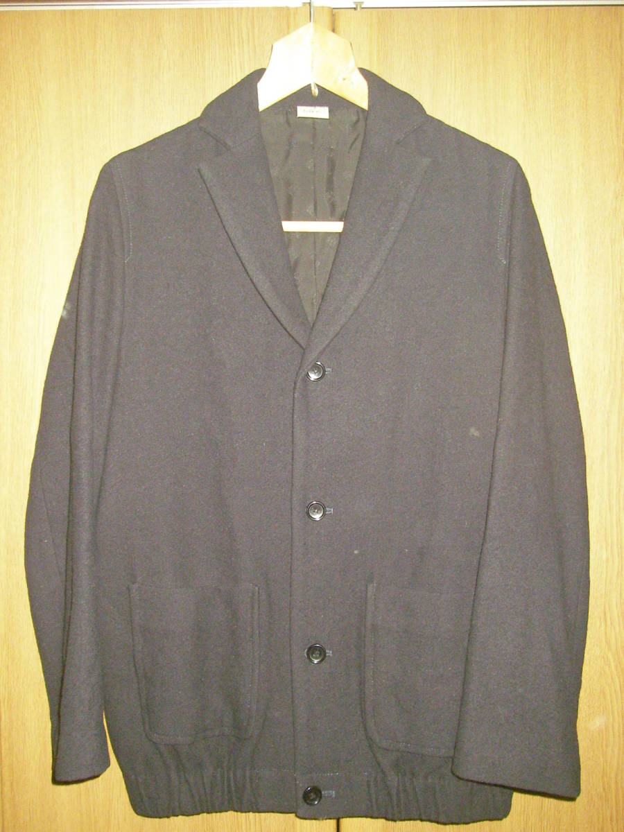 日本製、HUKEのネイビー系のジャケットです。カーディガンのようなデザインです。アンゴラ、ウールのいい生地です。若干の使用感ございますが、特に大きなダメージも無く(チェックしましたがUSED品ですので見落としがあるかもしれません。NCNRですので、ダメージ等に妥協できない方、自分でリペアできない方は入札しないでください)、まだまだ着用して頂けるかと思います。あくまでUSED品になりますので、神経質な方、USEDウール古着のご理解のない方、入札しないで下さい。サイズは、平置き採寸で、肩幅40センチ、袖丈57,5センチ、着丈67センチ、脇下身幅50センチです。素人採寸ですので多少の誤差はお許しください。
