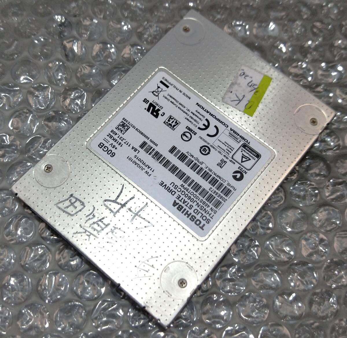 【中古パーツ】2.5 SATA SSD 1台 正常 TOSHIBA THNSNJ060GCSU 60GB 使用時間30954H■SSD6075