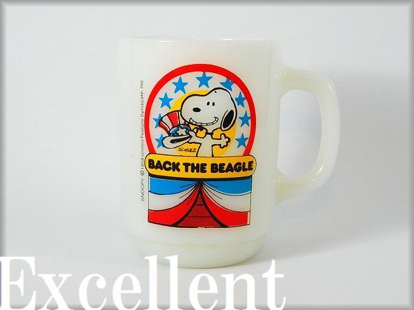 ■商品説明:ファイヤーキングのファイヤーキング・スヌーピーマグ・プレジデントNo.1マグです。 1980年のアメリカ大統領選のときに製造されたマグカップです。 全部で4種類あるコレクターシリーズのプレジデントNo.1です。