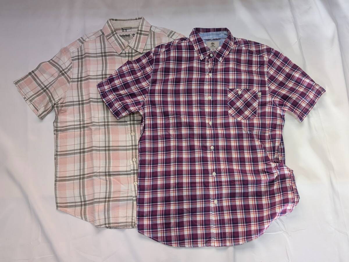 送料無料 Timberland ティンバーランド 2枚セット チェック ワークシャツ ピンク コットン リネン マドラス / 紫 ポリナイロン 速乾