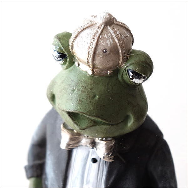 | ダンディーな雰囲気たっぷりの 樹脂製のカエルのオブジェは タキシードとつま先が反りかえったシルエットの靴の プーレーヌをビシッと着こなし 煌めく王冠を被ったお洒落さん まるでおとぎ話の中から 飛び出してきたような ユニークな世界観を 感じることができる置物 玄関でウエルカムプレートと 一緒に飾ったり 雨の日も周りを明るく照らしてくれるような 頼もしいカエルさんです 商品名 : ダンディーなクラウンフロッグの置物 商品番号 : cov6860 全体のサイズ(cm) : 幅14.5×奥行7.5×高さ26 重量 : 620g 材質 : ポリレジン 生産国 : 中国 ※手作り品のため色ムラ、擦り傷、僅かなガタつき等があります ※アンティーク加工の為のゴールド塗装が手に付着したり剥がれ落ちることがあります ※ディスプレイによる色の違いはご了承下さい |