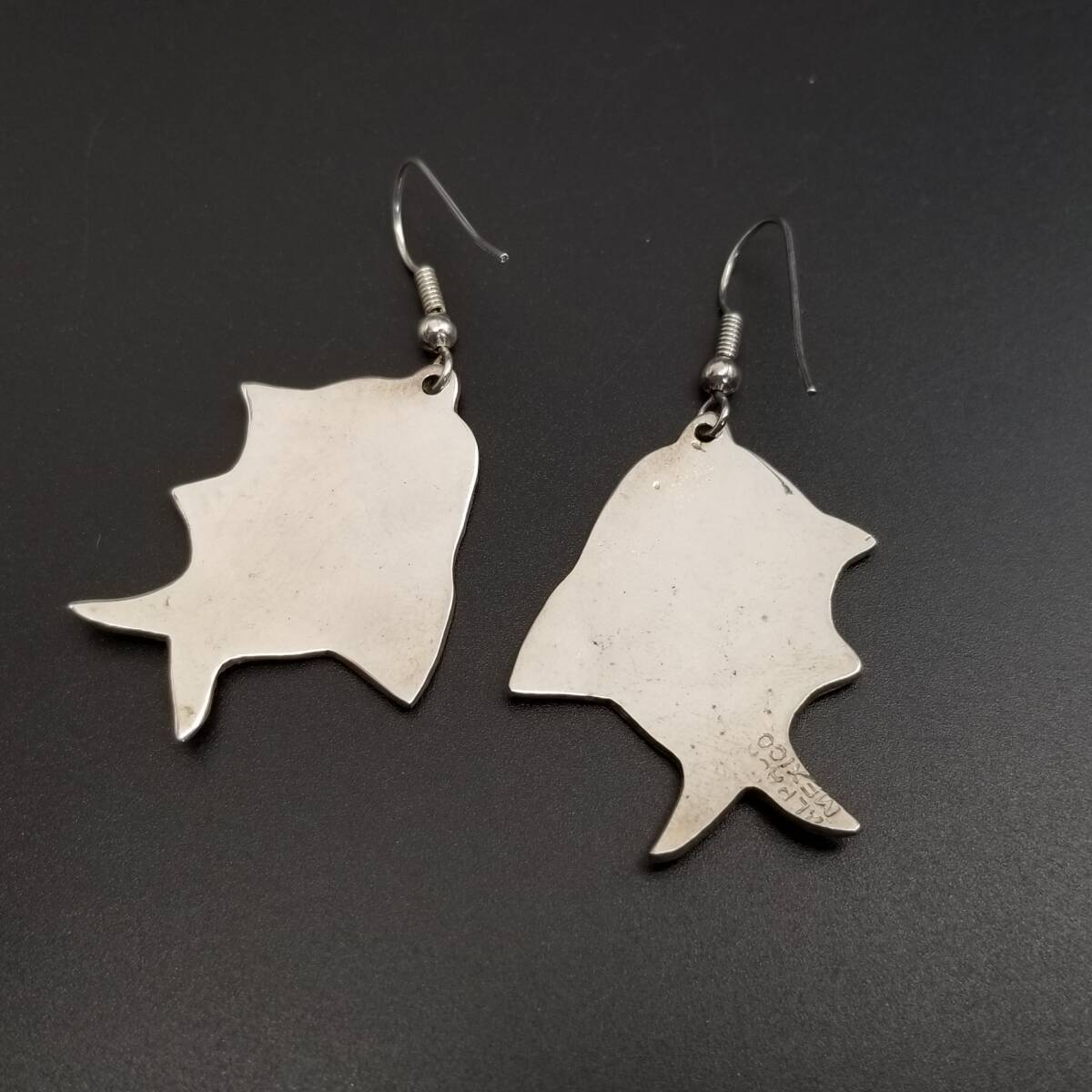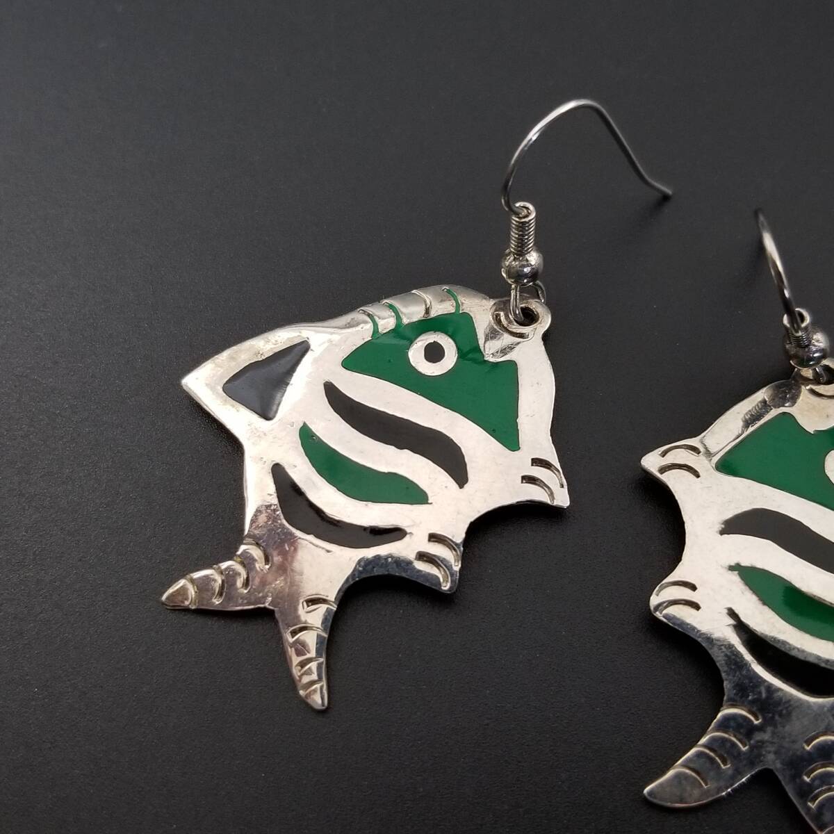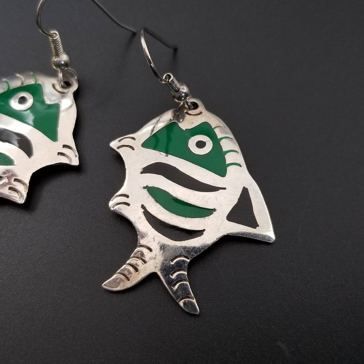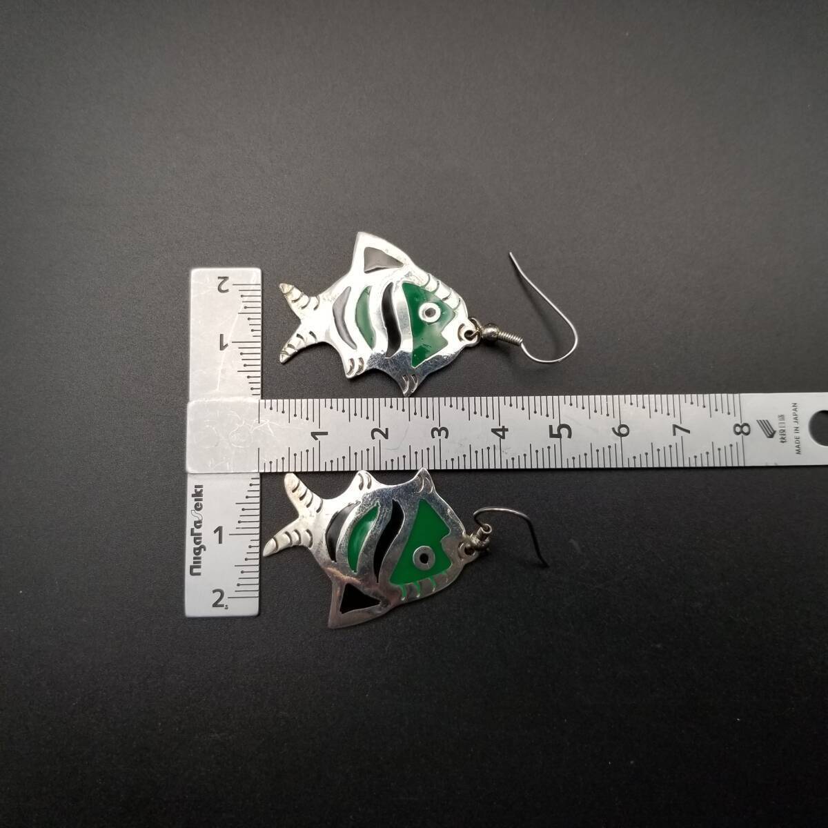 メキシコ ヴィンテージ 熱帯魚 メタルアート グリーンエナメル フック ピアス シルバートーン 合金 MEXICO R13-N