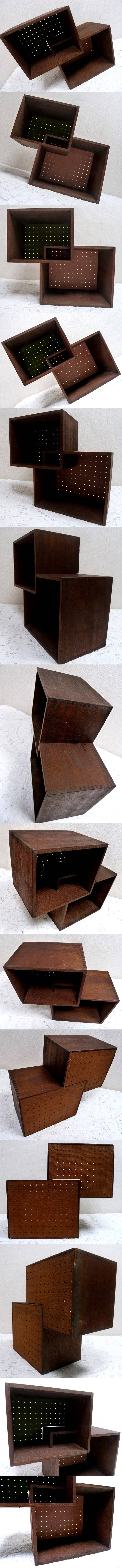 (☆BM)木製 飾り棚 パズルキューブボックス/パズルラック 高さ40×横幅45㎝ 北欧風 南仏風 レトロ コレクション台 アンティーク調