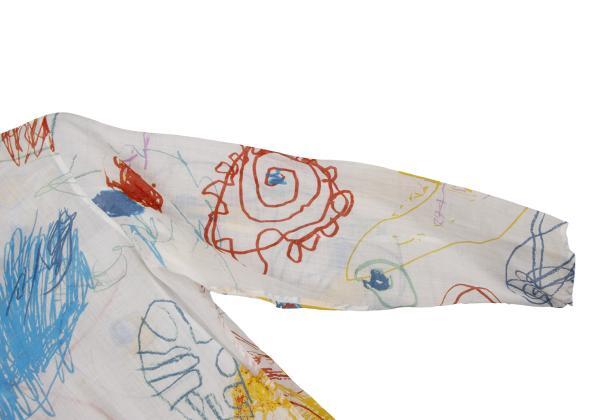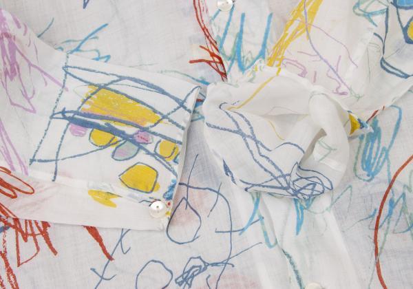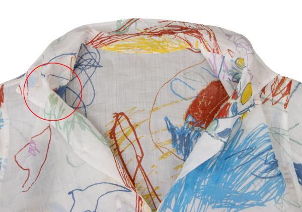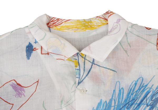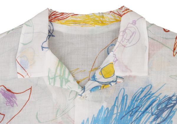 | ヨーガンレールJURGEN LEHL ヨーガンレールJURGEN LEHL リネンドローイングプリントオープンカラーシャツ 白マルチM |
