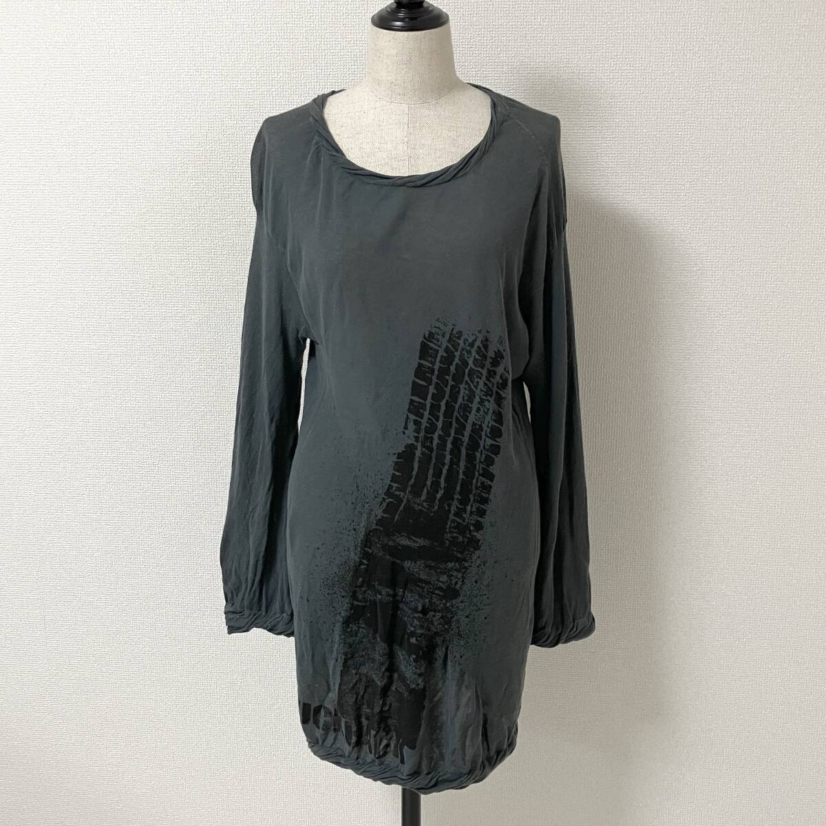 HYSTERIC GLAMOUR タイヤ痕 ロング丈 コットン ニット カットソー グレー系 Fサイズ ヒステリックグラマー チュニック archive 4090390