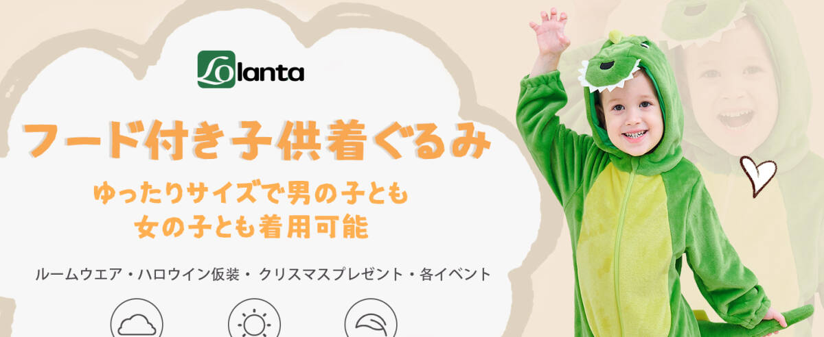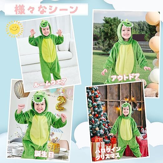 • 【特徴】可愛いお子様が恐竜に大変身 なりきり恐竜登場、春、秋、冬、暖かいやわらかふわふわ生地で真夏以外年間 着用可能です。 【恐竜スタイル】角あり 長いしっぽ有の大人気恐竜デザイン 大きくなって素敵な思い出となります。