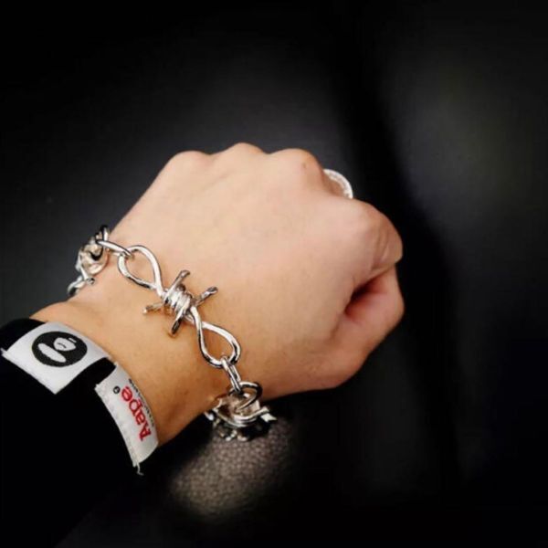 有刺鉄線 ブレスレット シルバーチェーン 韓国ファッション ロック系