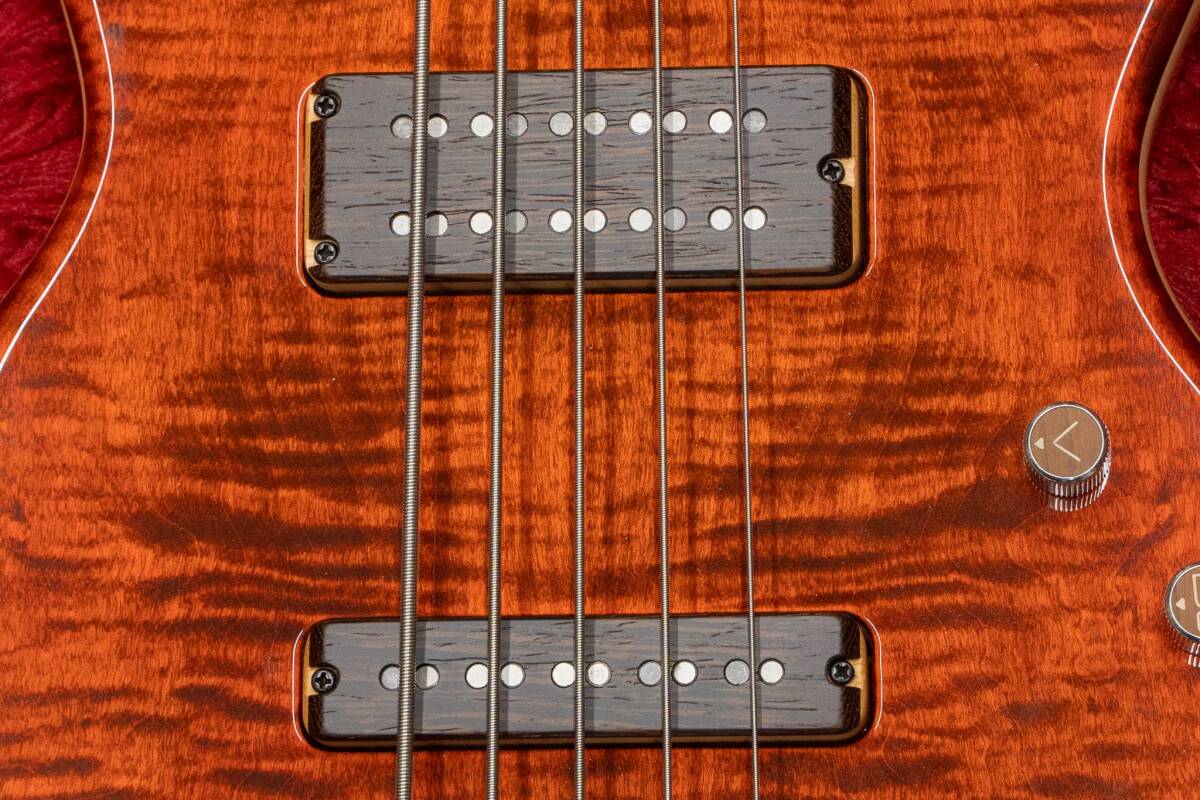 プリアンプと同様にピックアップもオリジナルのデザインで、フロントにはデュアルコイル、リアにはシングルコイルを搭載。