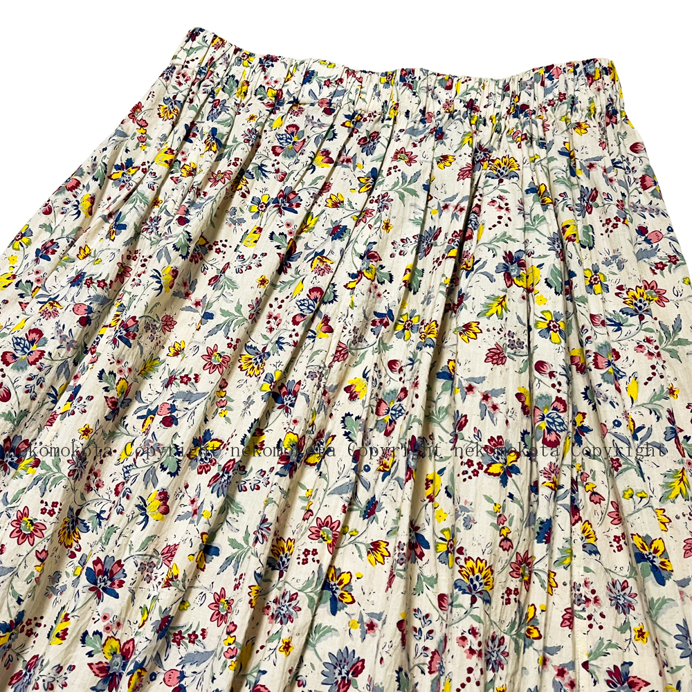 45R インドカディ春花プリントのイージースカート 税込み定価:69,300円 両サイドポケット付き。 ウエストはゴム入り&ヒモで調整可能。 ムラや綿の欠片の飛び込みがあっても美しいと思えるインドカディの生地はインドの村々の家庭で大切に紡がれ、織られています。 透き通るように薄いけれど豊かな表情は、現代の機械で出せない大好きな風合い。 春までもう少し。 色とりどりに咲き誇る春の花たちは素材感を生かすためにさらりと色をつけてプリントしました。 ウエストゴムのイージースカートは裾に向けて軽やかに広がるフレアシルエットです。 ぜひいかがでしょうか。 ■色:ライトベージュ×イエロー×ピンク×グリーン×ブルーなど ■サイズ:ウエスト75cm≪調整可能≫ 総丈85cm ※素人寸法ですので多少の誤差はご了承ください。 ■状態:A(2度着用程度の美品。使用感、目立つ汚れ・傷等なく良好です) ※状態は上からS/A/B/C/D の評価となります ■素材:写真参照 |