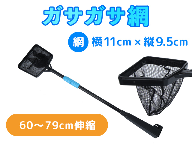 【ガサガサに最適】ネットの網目が細かく深さもあるので、小さな魚やエビ、水草などもしっかりとキャッチします。浮揚性も高いので、水揚げも簡単です! 【長方形フレーム】フレーム各辺が直線のため川底にしっかりと接地できます。狙った魚やエビ、メダカなどを逃しません! 【伸縮可能】取手の長さは調整可能で持ち運びも簡単。水深に合った長さに合わせたり、お子様の体長に応じてガサガサしやすい長さに調節できます。 【長寿命・耐荷重大】取手部分は耐久性の高いガラス繊維製。500gの魚も軽々とキャッチできます!取手には便利なフックが付いているので、未使用時は水槽の側面に収納できます。 【商品詳細】◆内容:ガサガサ網 極小サイズ ◆サイズ:<網>横11cm×縦9.5cm×深さ14cm、<取手>長さ60~79cm伸縮、◆重さ:200g、◆材質:<網>ポリエステル、<取手>ガラス繊維、ABS |