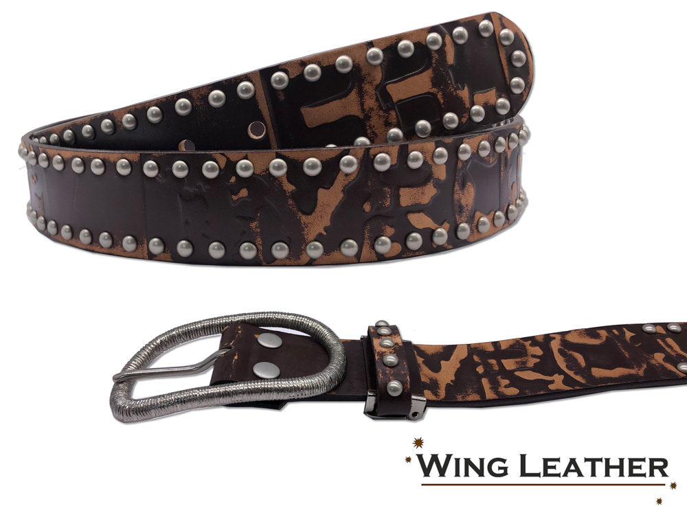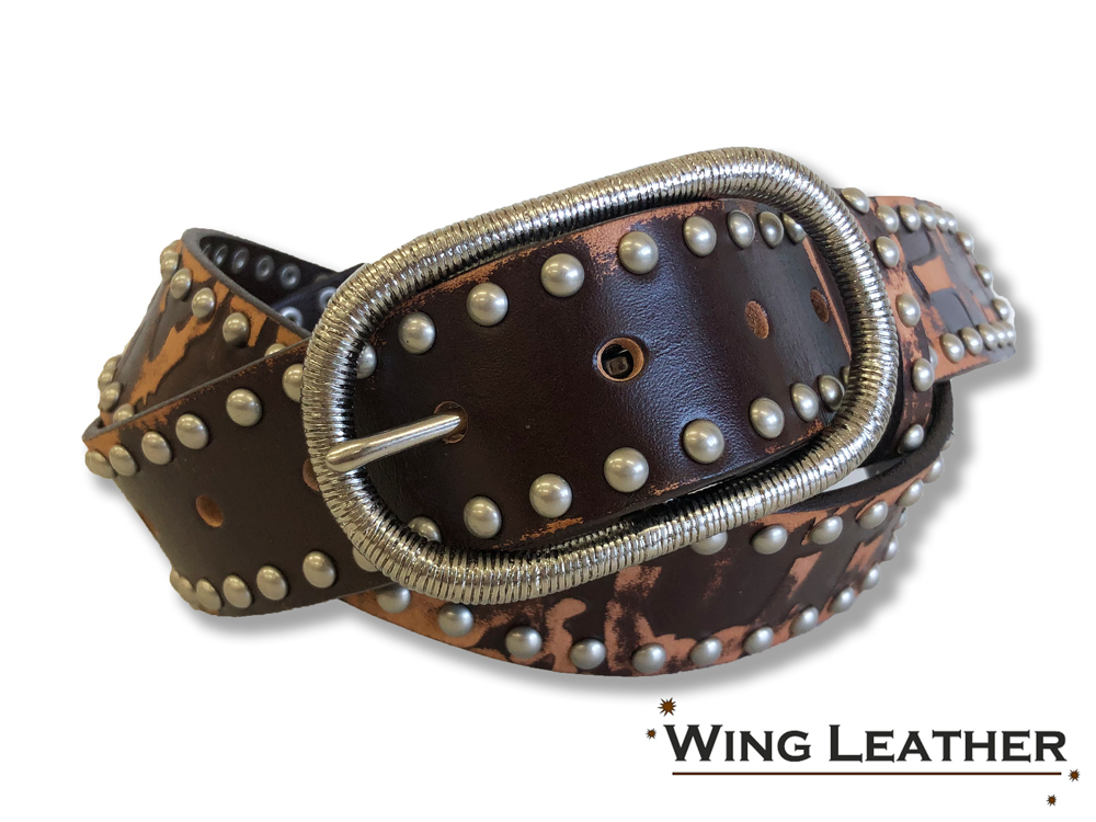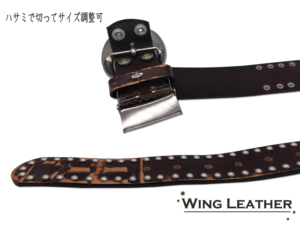 新品 イタリアンレザー カジュアルベルト 本革 牛革 一枚革 スタッズ メンズ レディース 40mm ダメージ加工 ダークブラウン GTC022-DB