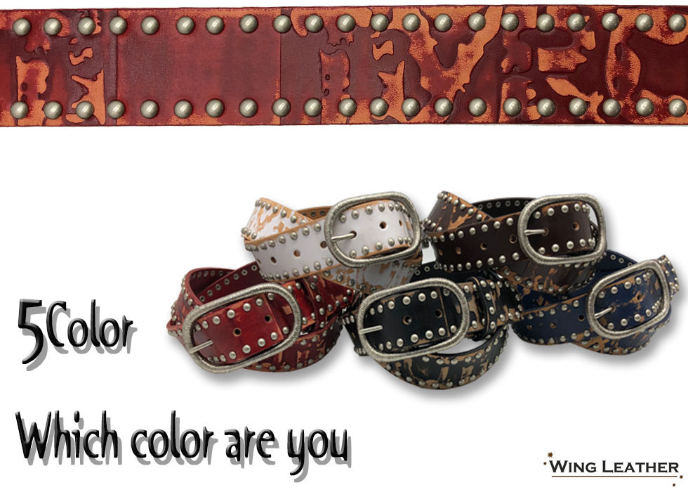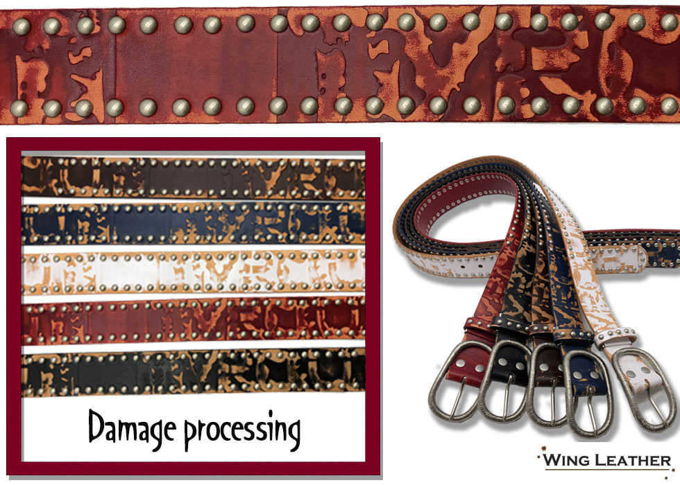 ペーパーでダメージ加工しサイドは玉カシメを打ちカジュアルに仕上げてます。