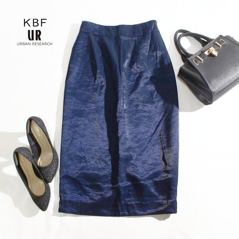 美品 KBF ケービーエフ URBAN RESEARCH アーバンリサーチ 艶 光沢 ロングスカート ネイビー 紺 F 春 秋 冬 綺麗め 上品