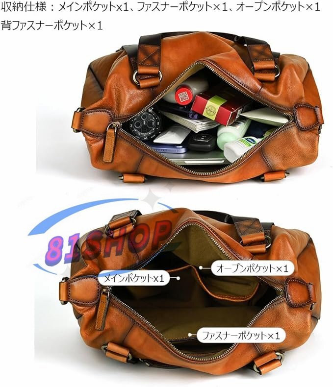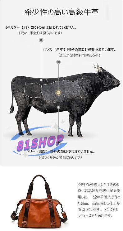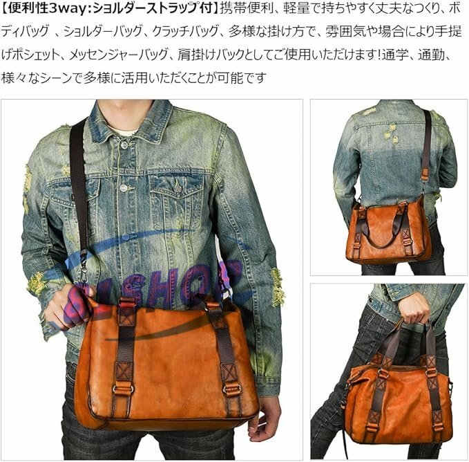 「81SHOP」 アンティーク風合い鞣し天 然 牛革 ワンショルダーメンズ バック 3way 斜め掛け胸バッグ 手提げバッグ 手持げバッグ トートバ