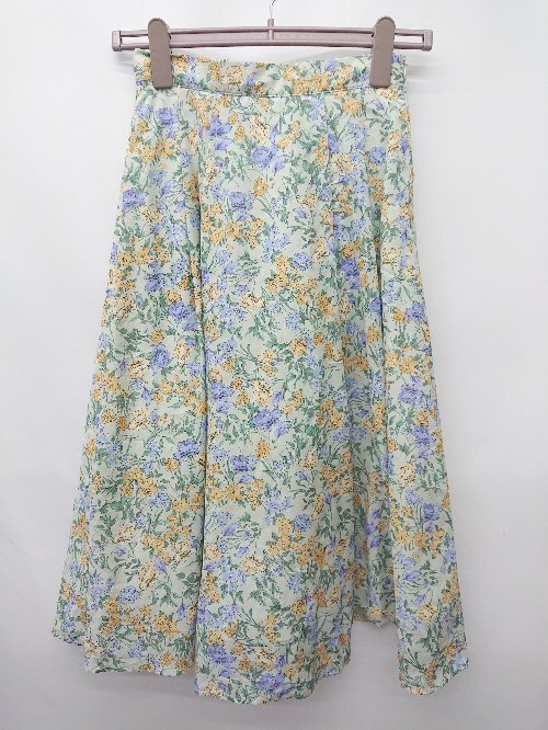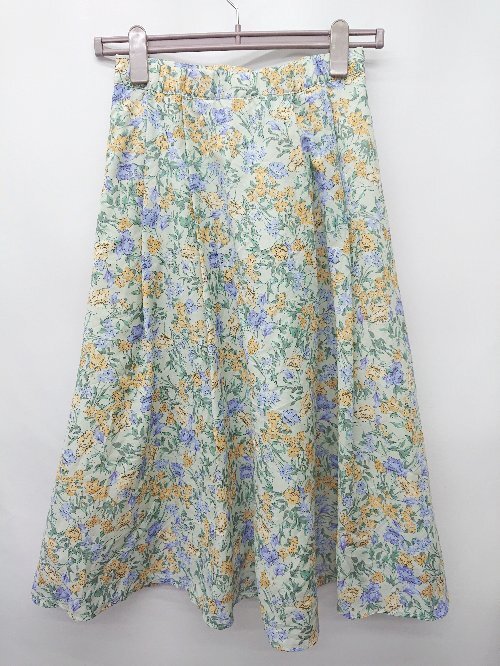 ◇ ⊂ Te chichi テチチ 花柄 タック 膝下 フレア スカート サイズS グリーン系 レディース P