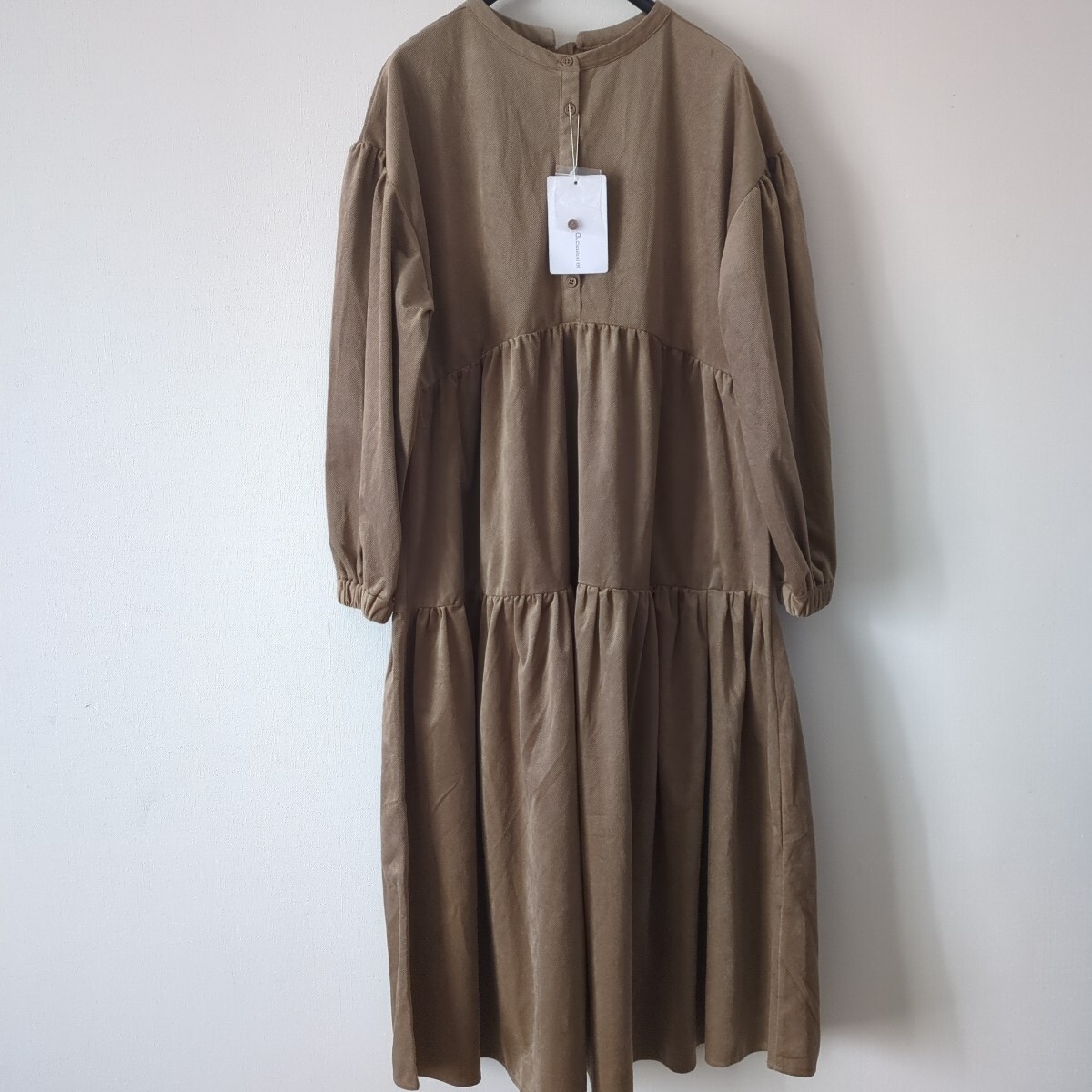未使用/Classical Elf ティアード2wayカットコーデュロイ バックリボンワンピース ベージュ ロングマキシ丈 ベージュ スタンドカラー