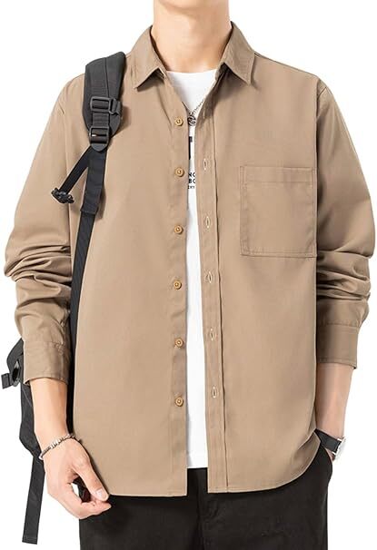 メンズ シャツ 長袖 ゆったり カジュアル 無地 2XL