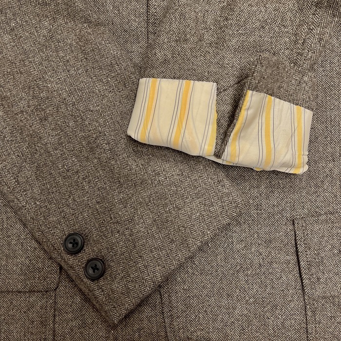 | 商品状態・ディテールなど | (※実測寸法など、多少の誤差はご容赦下さい。) (※商品は衣類の場合は全て畳んで保管しており、服飾雑貨も靴以外は必要に応じ畳んで保管しております。保管や梱包による畳み皺などはご了承下さい。) ●気になったダメージの場所と種類: ・所々:- ・全体:- ・肩:- ・襟:- ・胸:- ・腹部:- ・裾:- ・右袖:- ・左袖:- ・袖口:- ・背中(上):- ・背中(下):- ・内側:- ●その他ディテール:3つボタン留め、内ポケット×2、肩パッドは触った感じ無いように感じますが薄手のものが入っているかもしれません ●付属品など:- ●その他:日本製 |