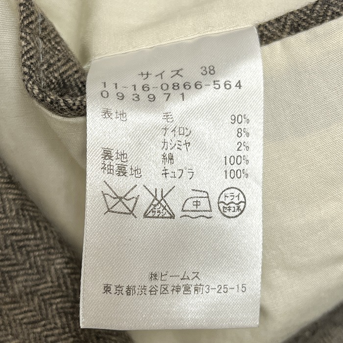 | 商品タイトル | ビームスプラス BEAMS PLUS 微起毛 テーラードジャケット ヘリンボーン 背抜き裏地 毛×ナイロン×カシミヤ 38 メランジ ベージュ メンズ |