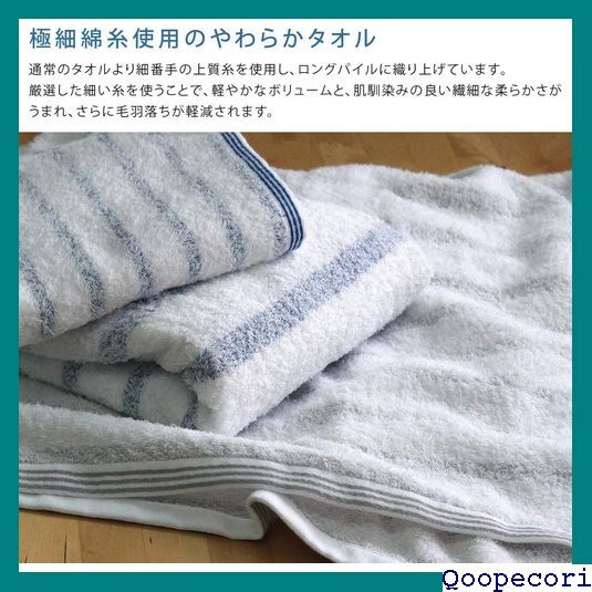 【極細綿糸使用のやわらかタオル】通常のタオルより細番手の上質糸を使用し、ロングパイルに仕上げています。厳選した細い糸を使うことで、軽やかなボリュームと、肌馴染みの良い繊細な柔らかさが生まれ、さらに毛羽落ちが軽減されます。