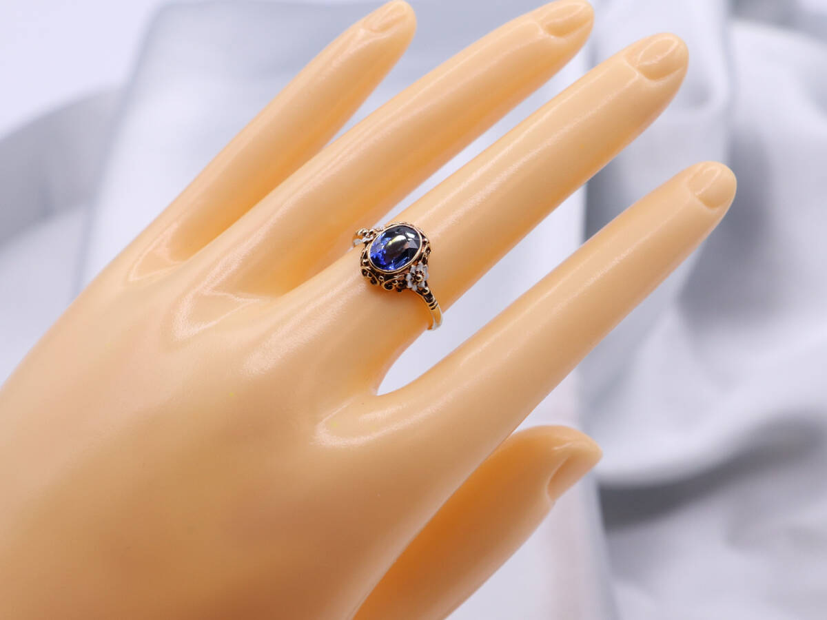 ◇サファイア 585刻印 K14製 ヴィンテージリング 12.5号 指輪 フラワー 花 ゴールド【K31】◇