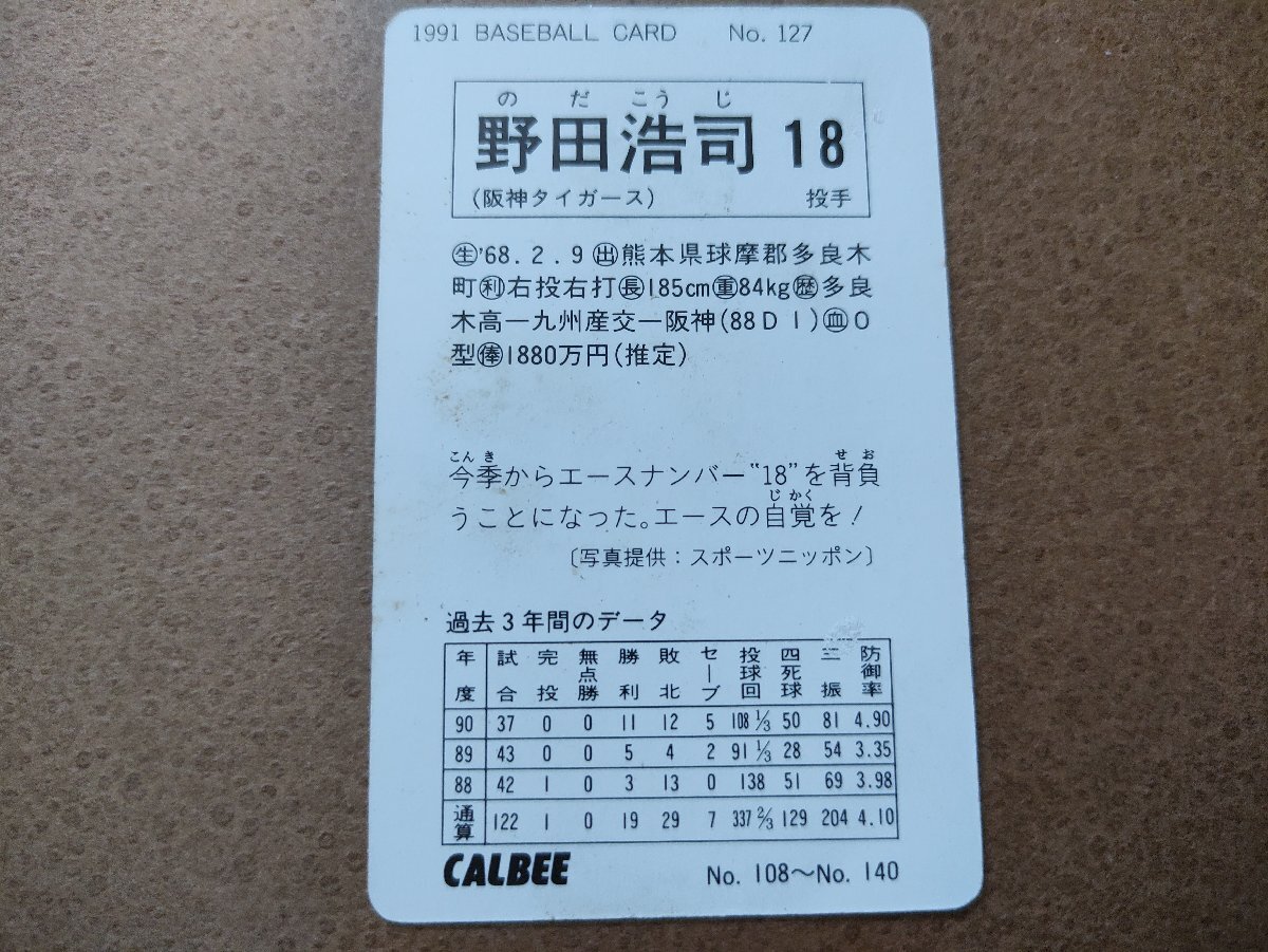 野田浩司 阪神タイガース '91プロ野球カード カルビー