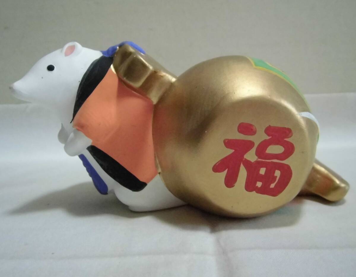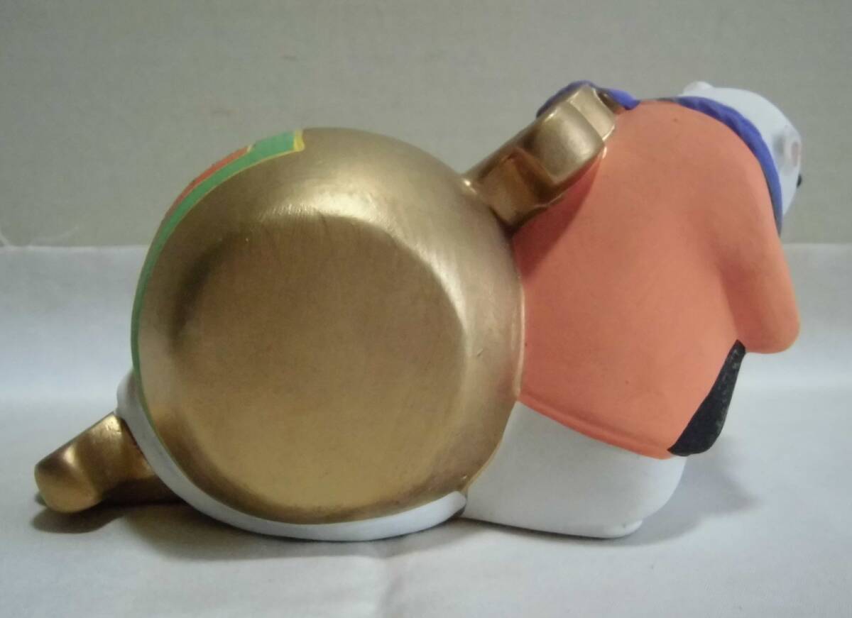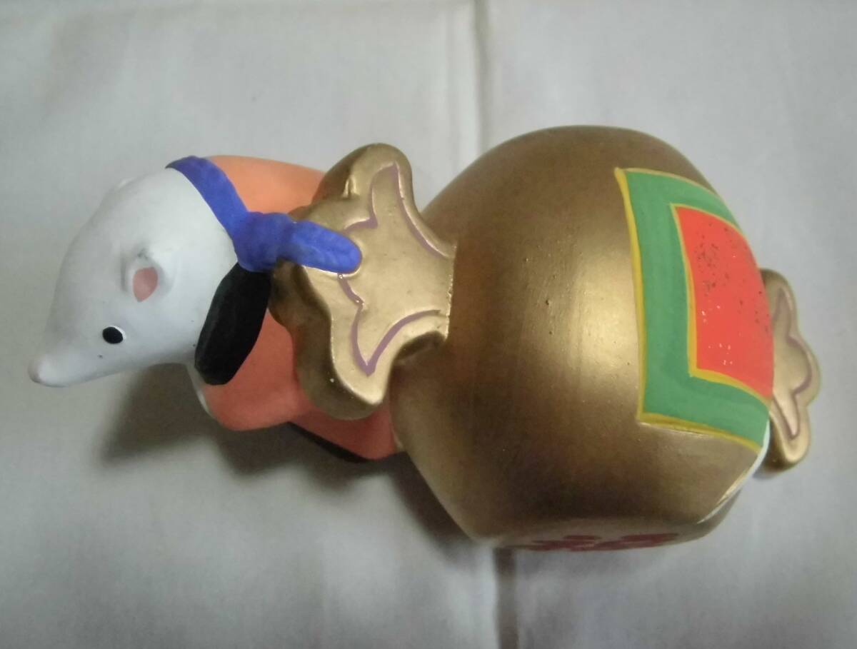干支置物 子 飾り台付き 打ち出の小槌を担ぐ 十二支 色絵 金彩 鼠 ねずみ 陶人形 土人形 招福 開運 縁起物 飾り物 オブジェ 工芸品 レトロ