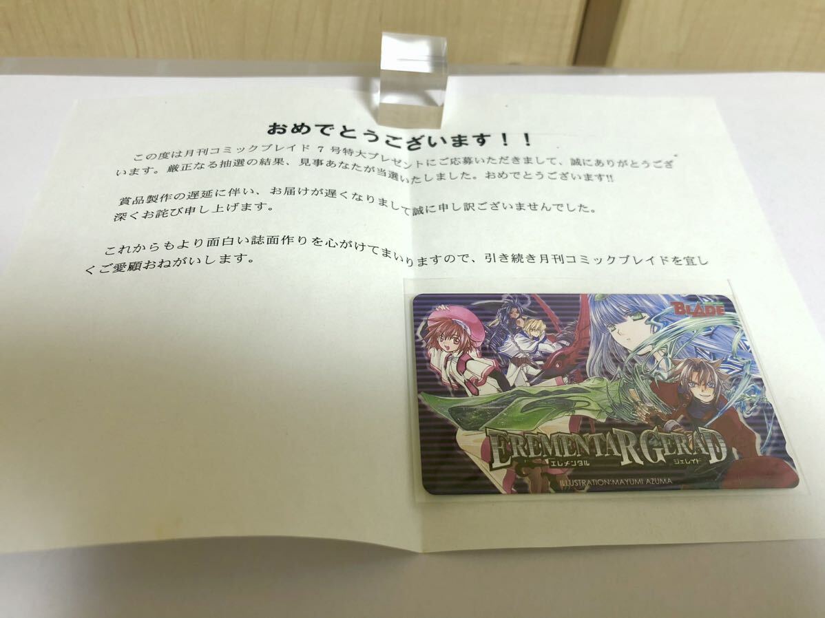 ■月刊コミックブレイド「エレメンタルジェレイド」 抽プレ 非売品 テレカ + 当選通知書です。