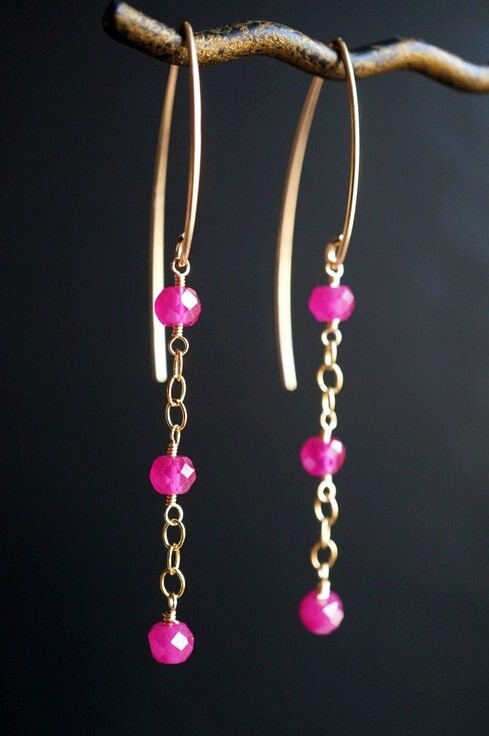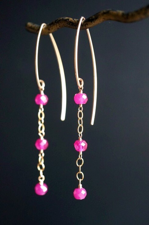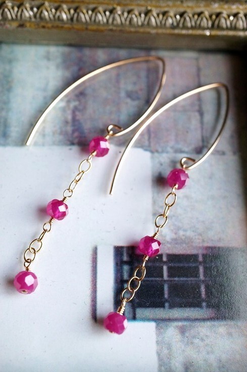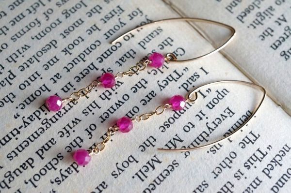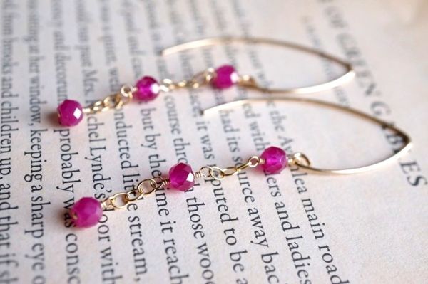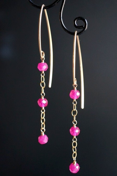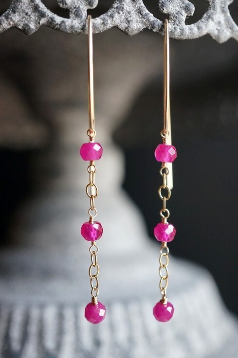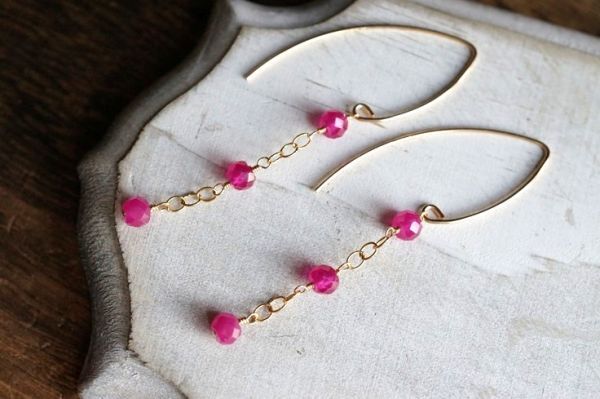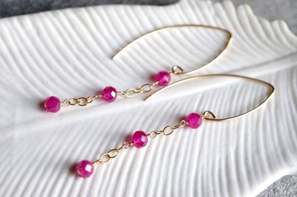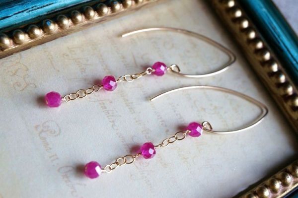 K14GF ピアス 2269 ルビー3粒  マーキースフックピアス 赤色