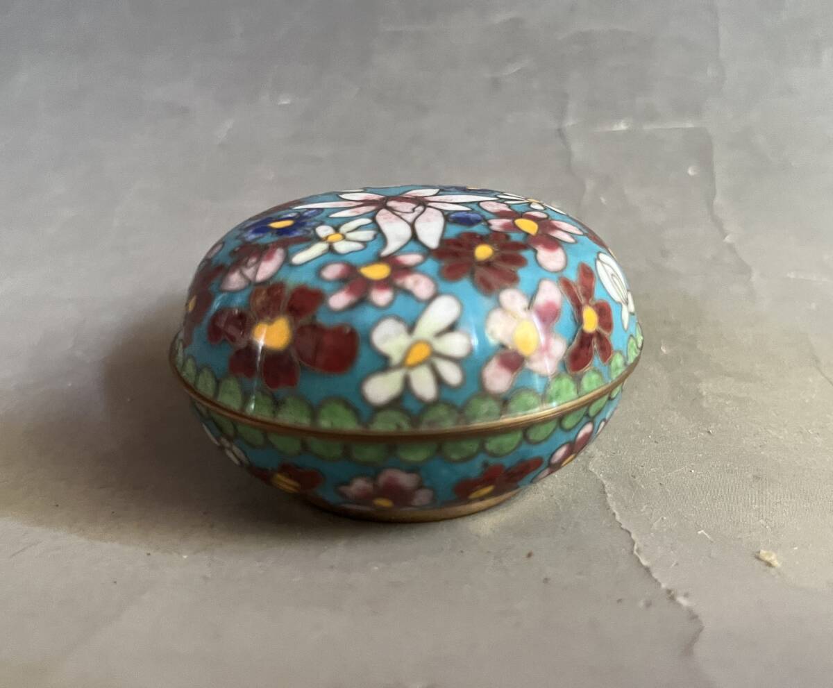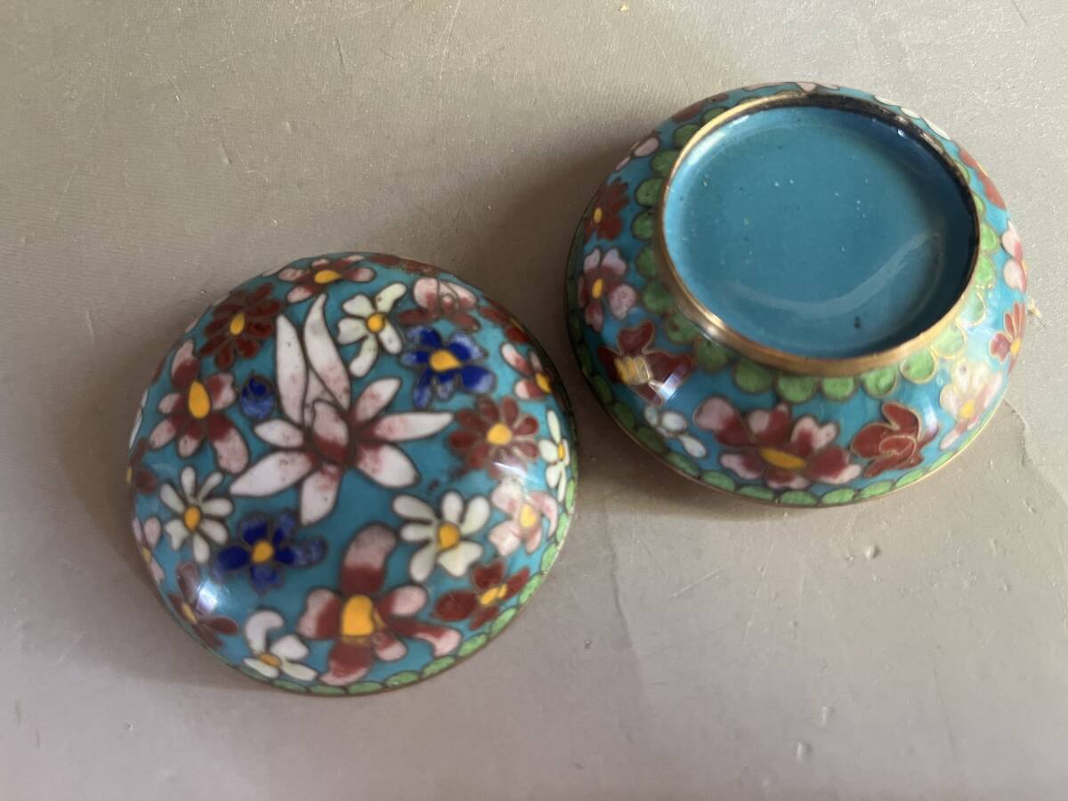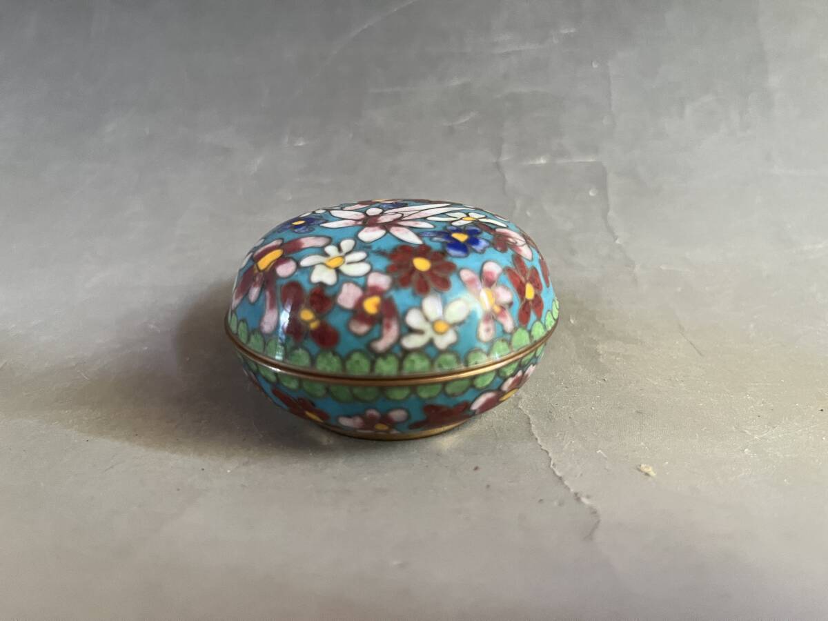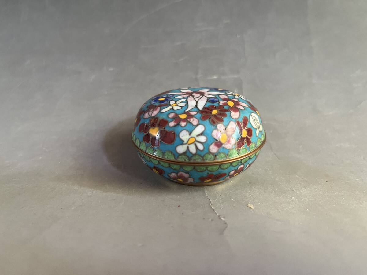 合子■香合 七宝 花柄 花尽くし 青 お茶道具 古美術 時代物 骨董品■