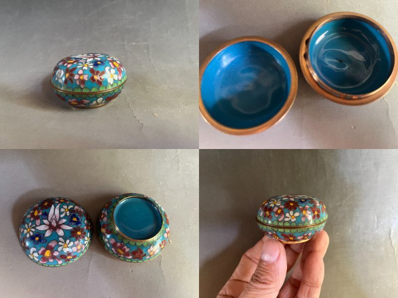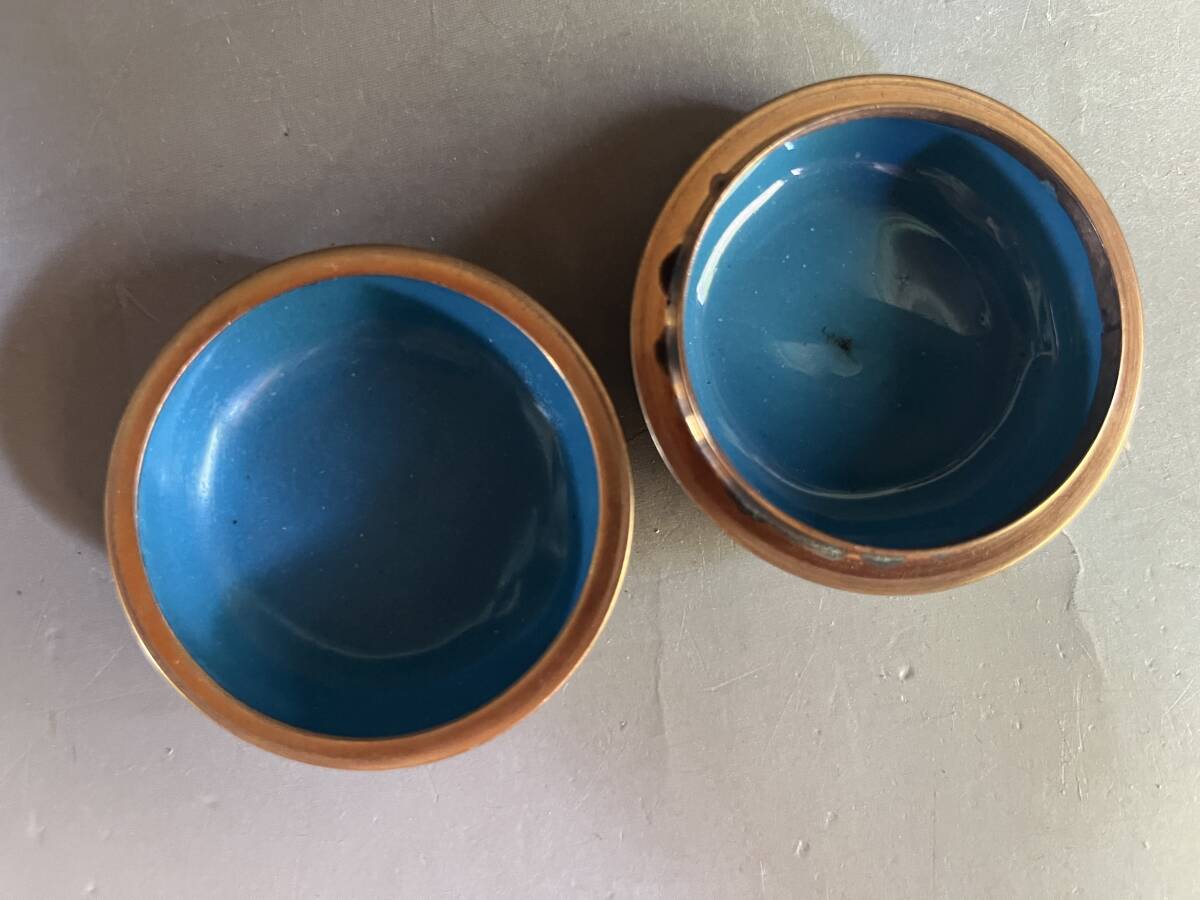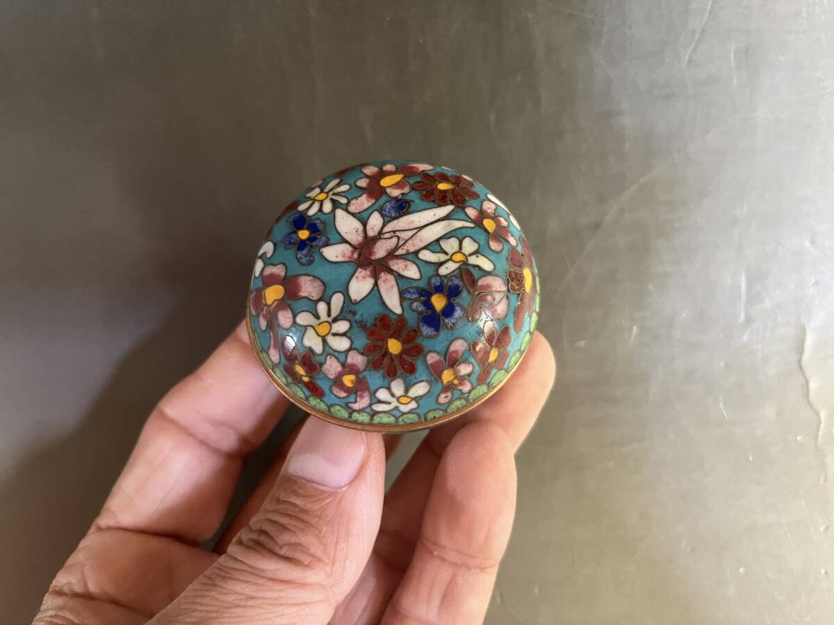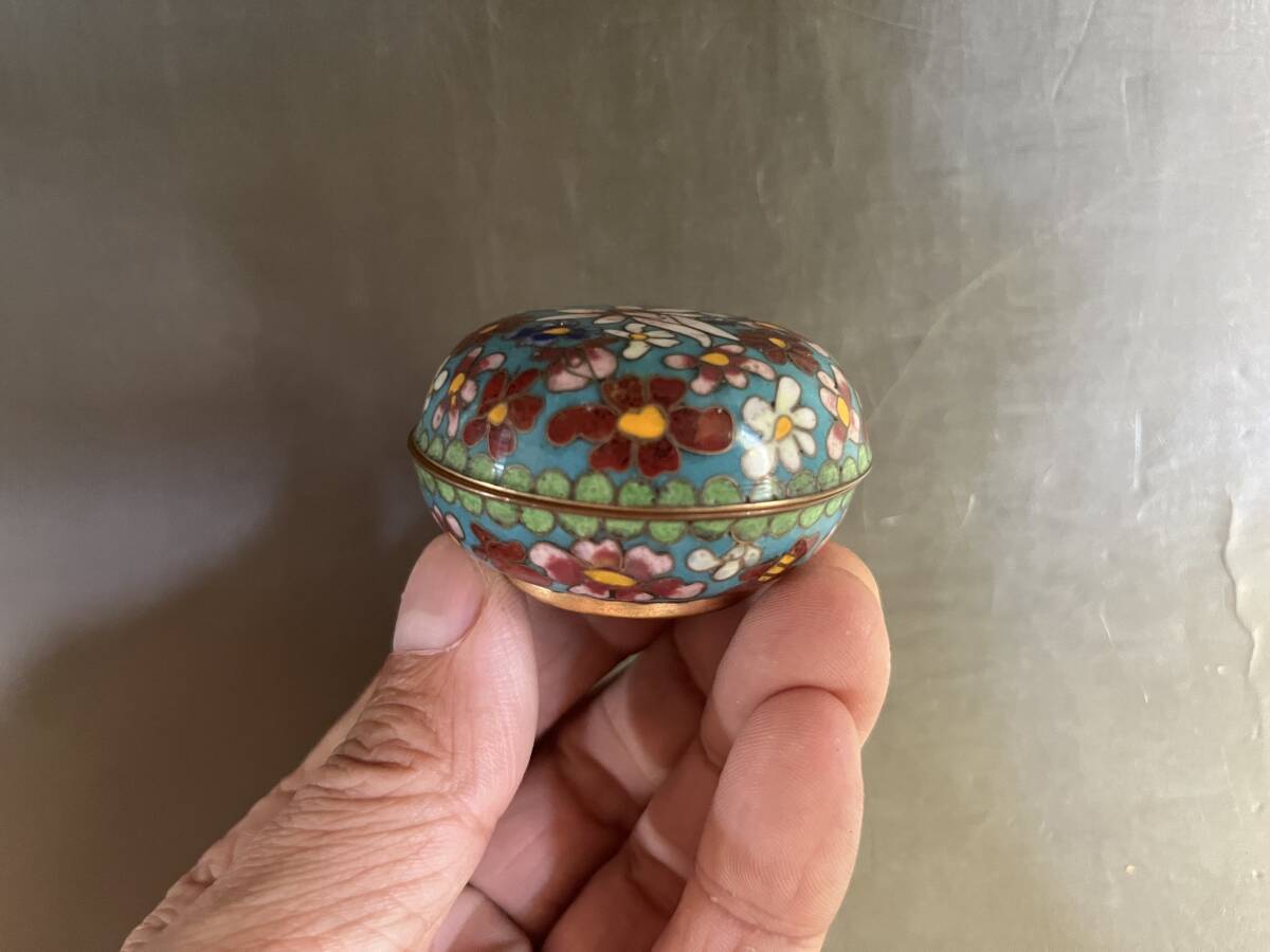 合子■香合 七宝 花柄 花尽くし 青 お茶道具 古美術 時代物 骨董品■