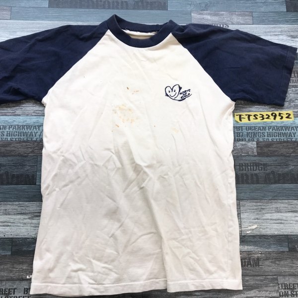 HEARTS OF GOLD メンズ ハートマーク ラグラン 半袖Tシャツ 白紺 です。
