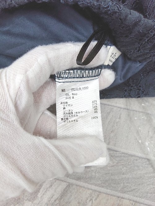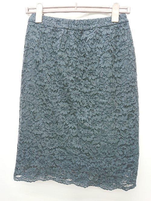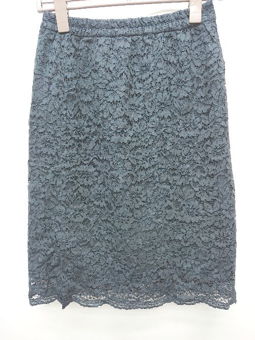 ◇ earth music&ecology レース 花柄 膝下丈 タイト スカート サイズM ネイビー レディース P