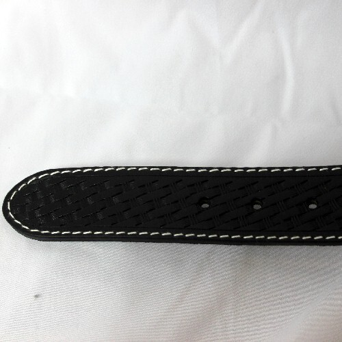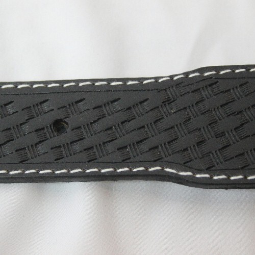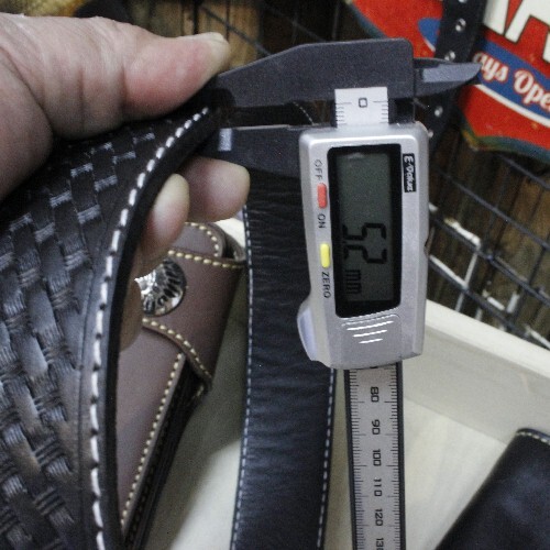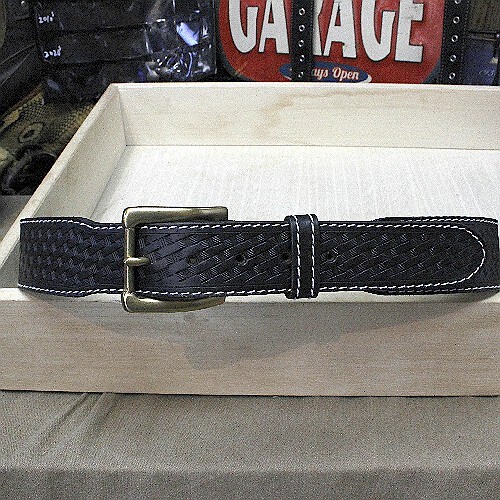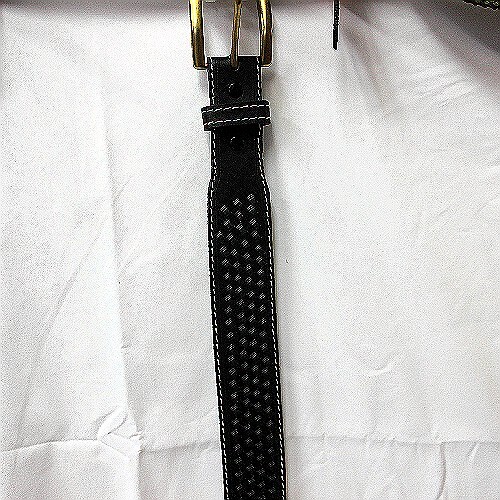 職人が叩いて作ったスタンプ柄のベルトです、ベルトの厚さは5mm以上あり迫力があります。ベルトの幅はバックルが付いている前面から10cm迄の部分とバックルを留める穴の開いた部分の後面、約25cm部分が3.5cm幅、それ以外の中央全体部分が4.5cm幅になります。当ベルトは34インチサイズとなり、全長約100cm、81cm~92cm部分に5カ所穴が開いております、バックルは真鍮製になりボタンで留まっており取り外しは可能となっております。又同デザインで32インチ~42インチ迄、偶数サイズ展開しており他サイズの商品ページが見当たらない場合はお気軽にこちらのサイトからお問い合わせ下さい。