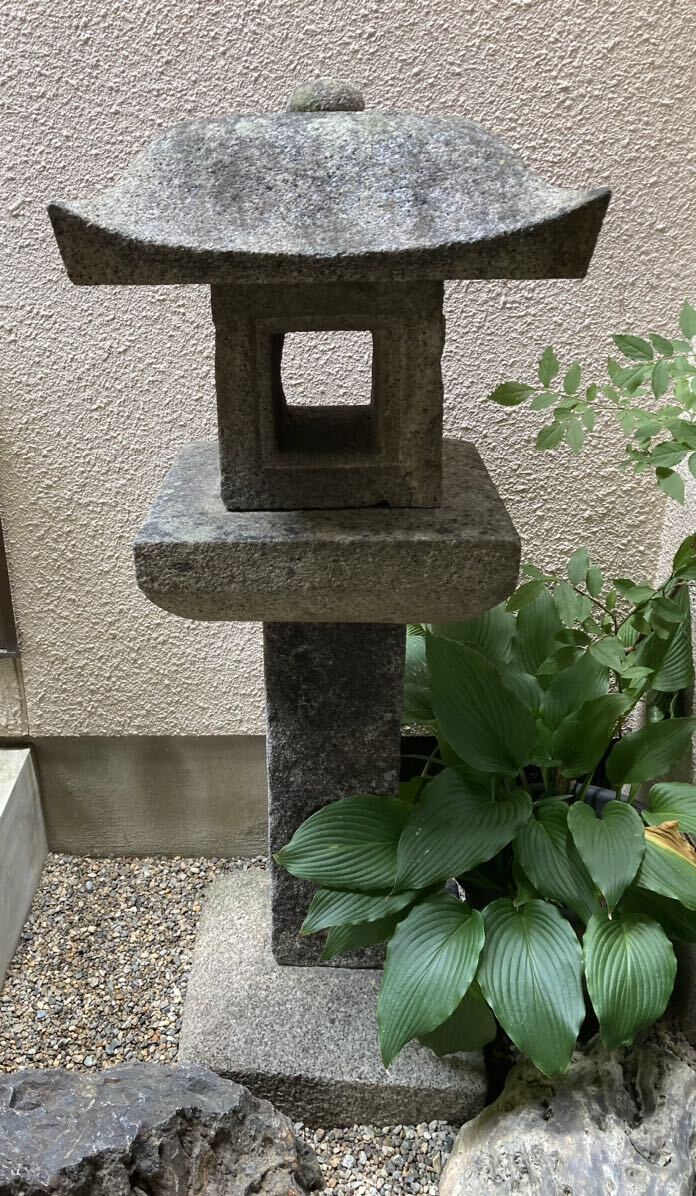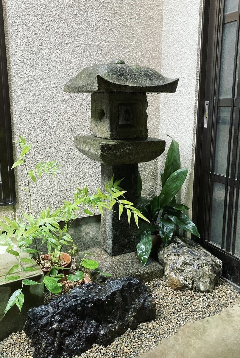 (出品は燈籠のみです、写真に写っている景石や植物はつきません)