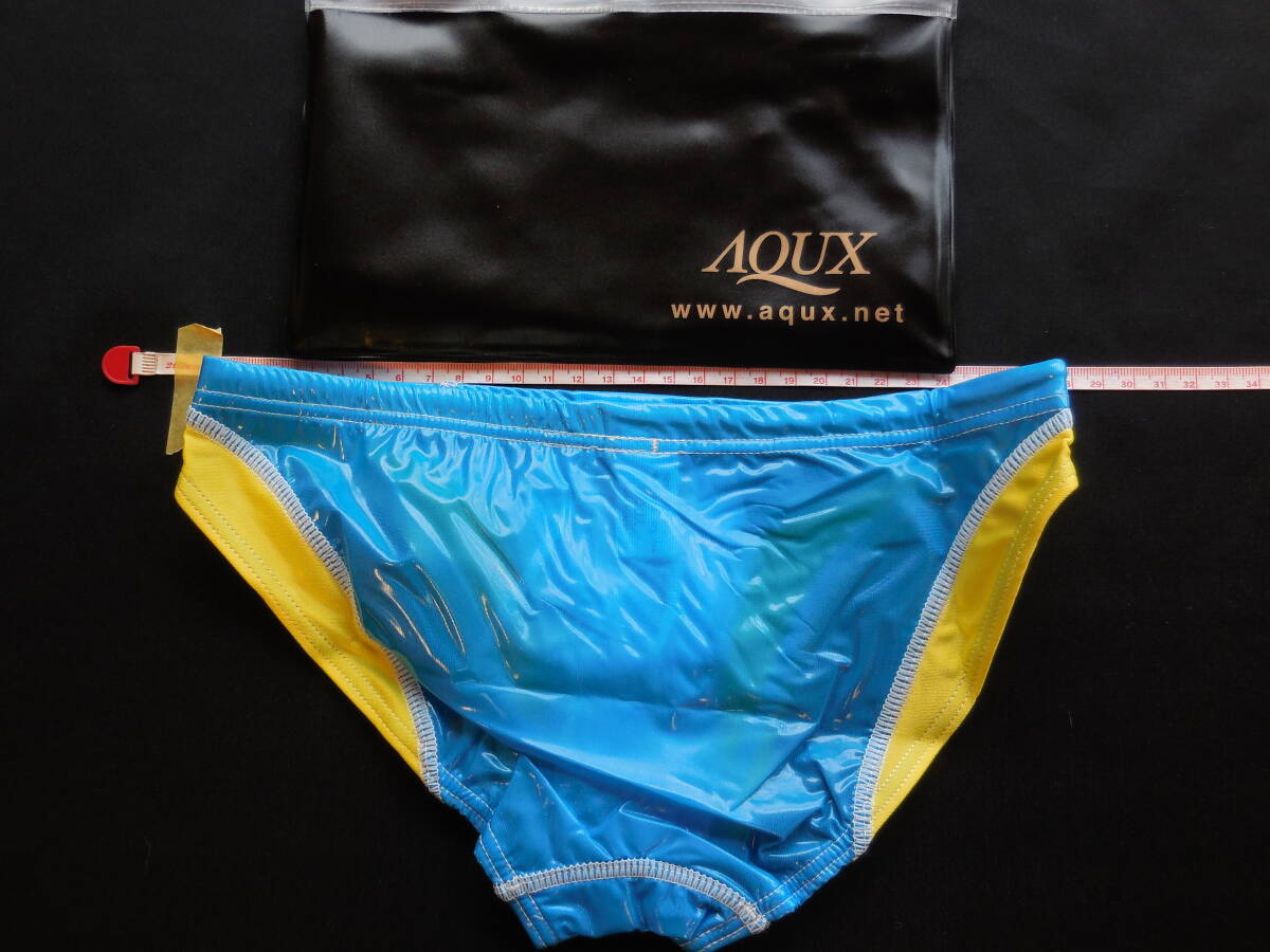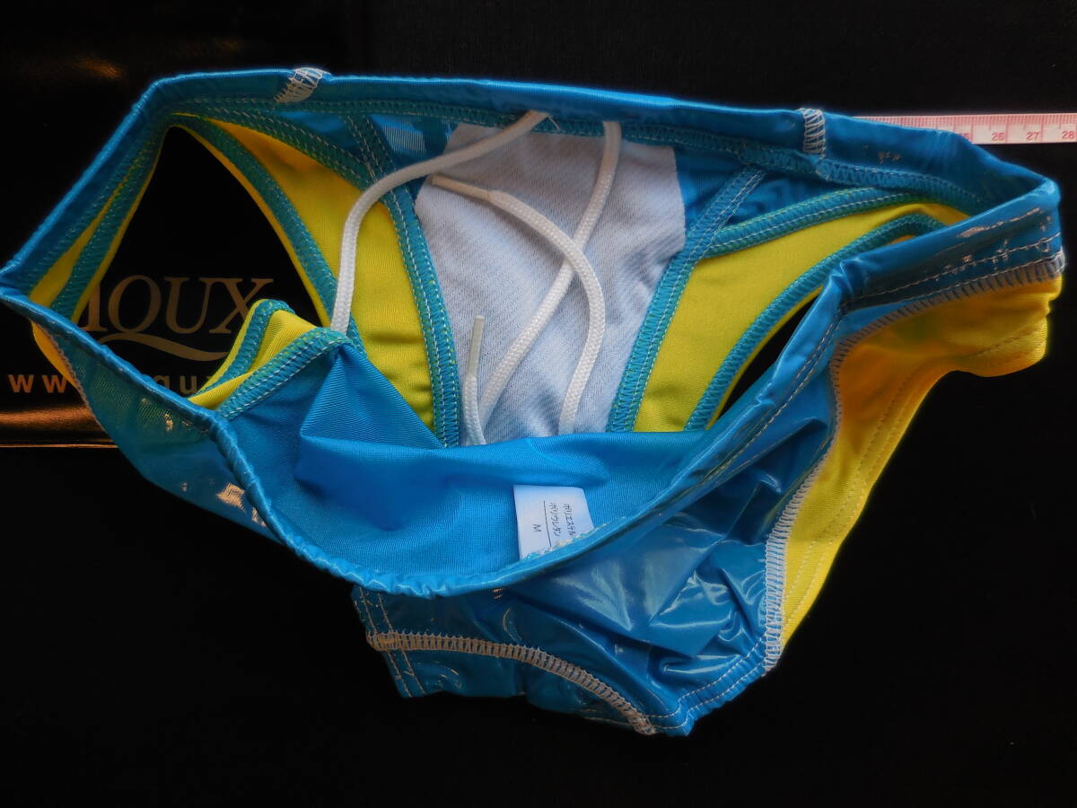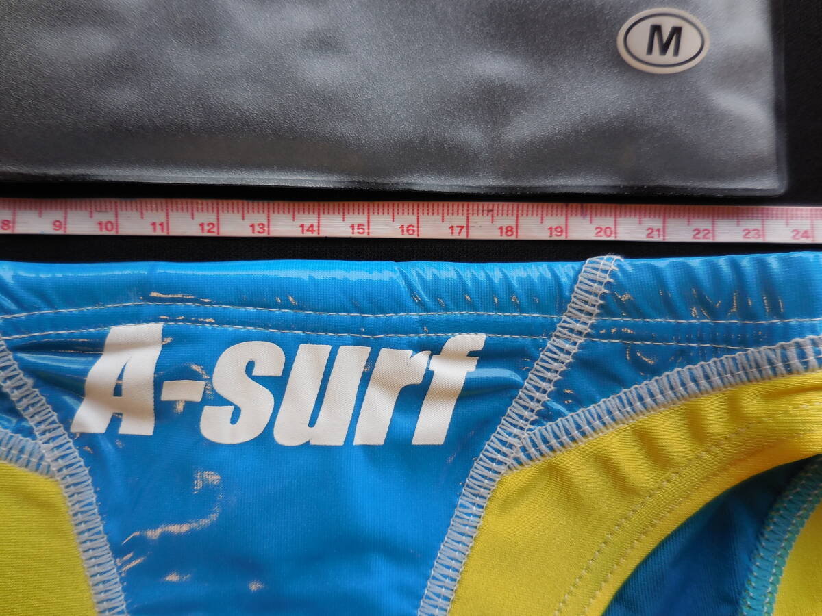 未使用品【サイズ:M】A-SURF 競泳 水着 競パン AQUX 透け ビニール 青黄