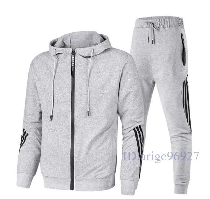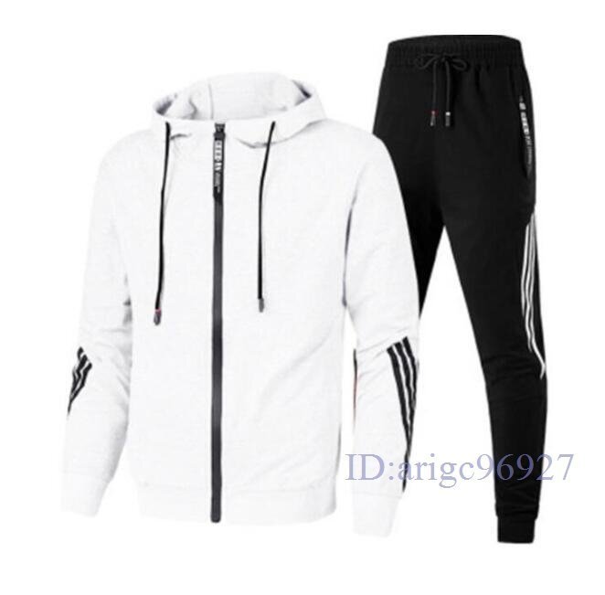 Q901☆新品秋ジャージ メンズ セットアップ 上下セット スウェット部屋着運動着トレーニングウェア ジャケット ロングパンツM~4XL白