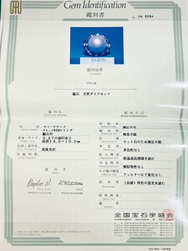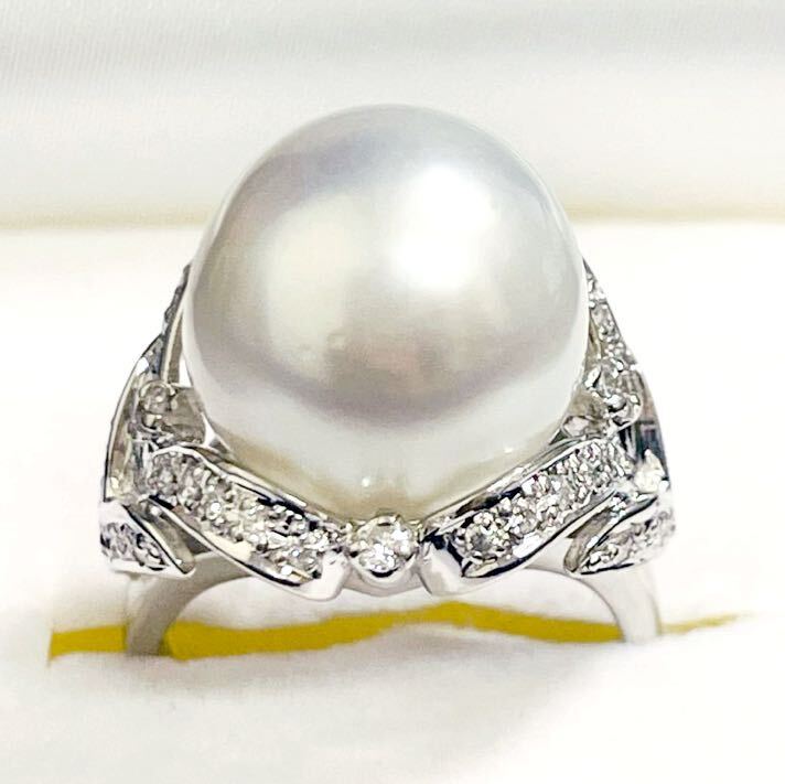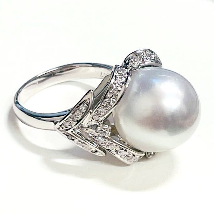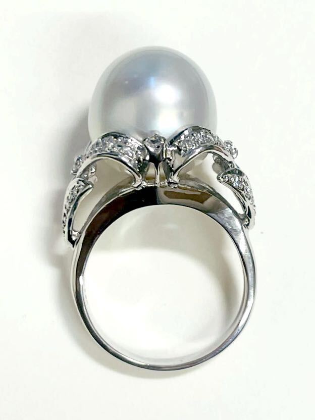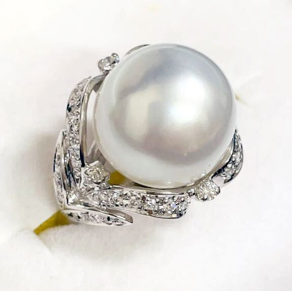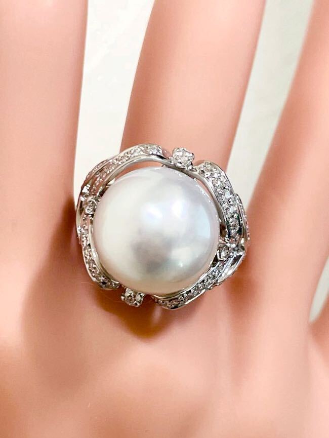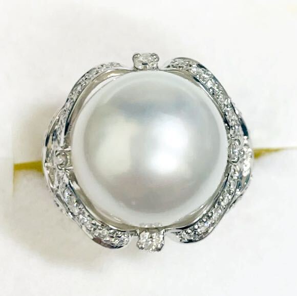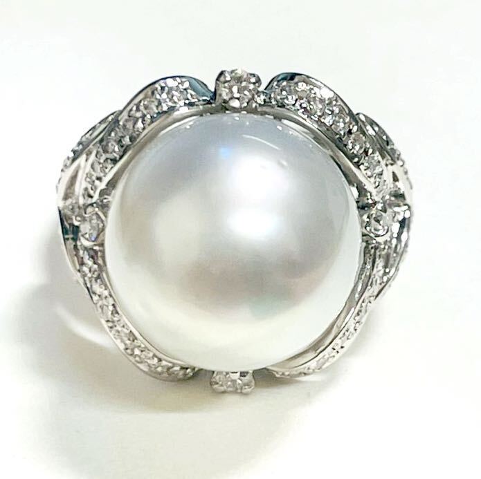 こちらは、Pt900台にパール1個&ダイヤ40石付きリングです。