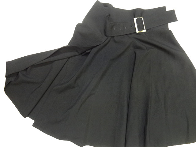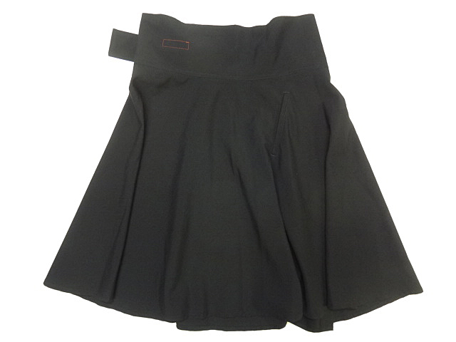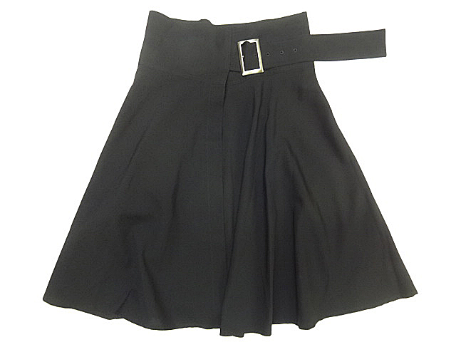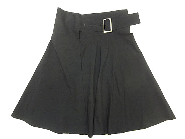 Y'S ワイズ ヨウジヤマモト レディース フレア ラップ スカート 黒 ブラック スクエア ビッグ バックル デザイン 無地 ニー レングス sz 1