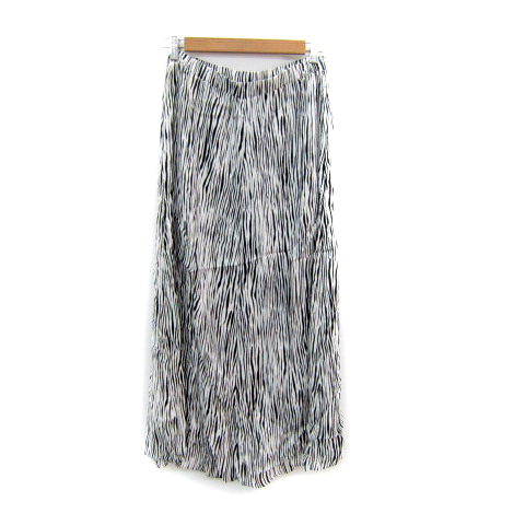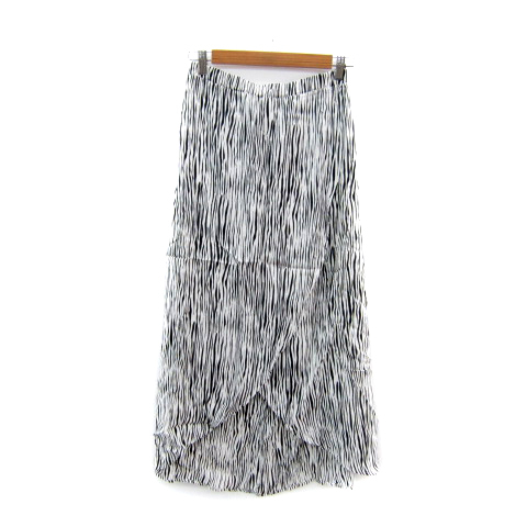 スリードッツ three dots フレアスカート ロング丈 ストライプ柄 スリット S 白 ホワイト 黒 ブラック /SY11 レディース