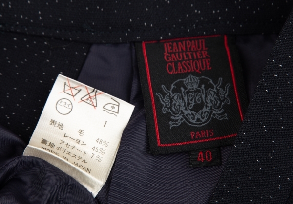 | ジャンポールゴルチエ クラシックJean Paul GAULTIER CLASSIQUE ウールレーヨン点描スリット台形スカート 紺40 |