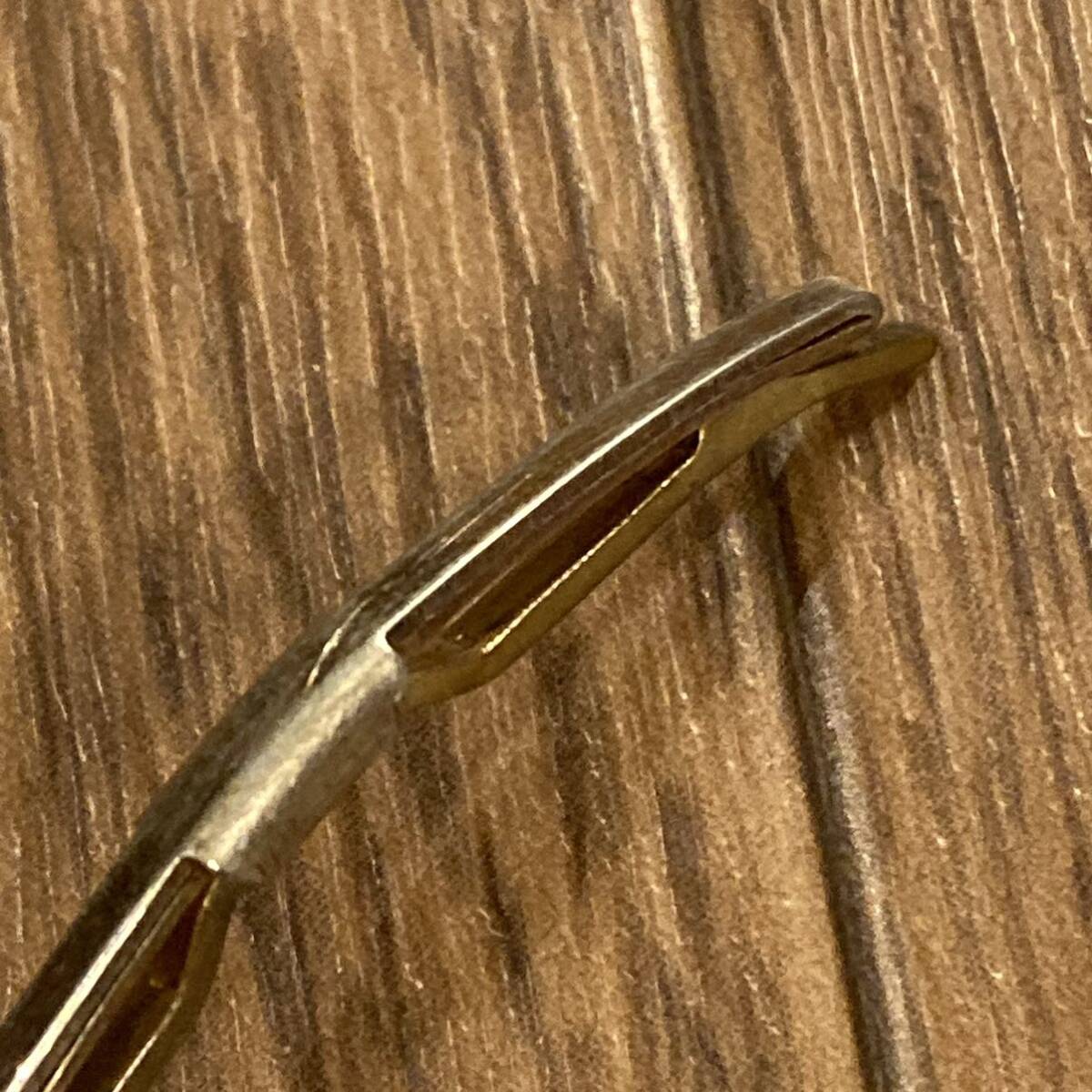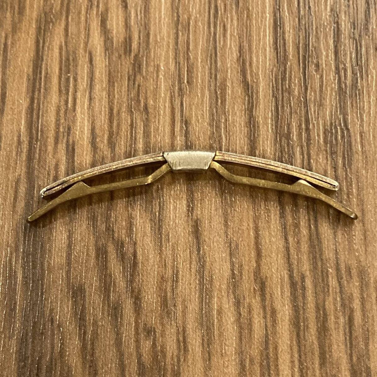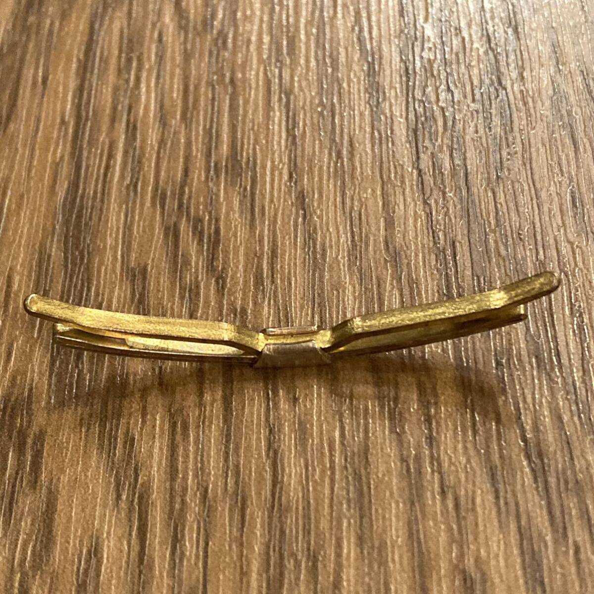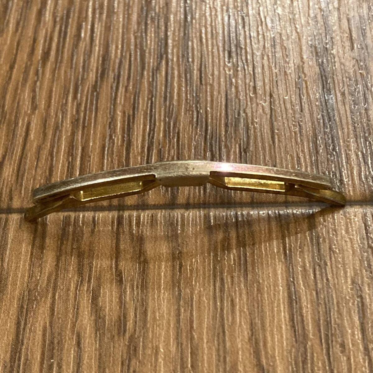 ゴールドトーンのプレートを折り曲げた珍しいタイプです。
